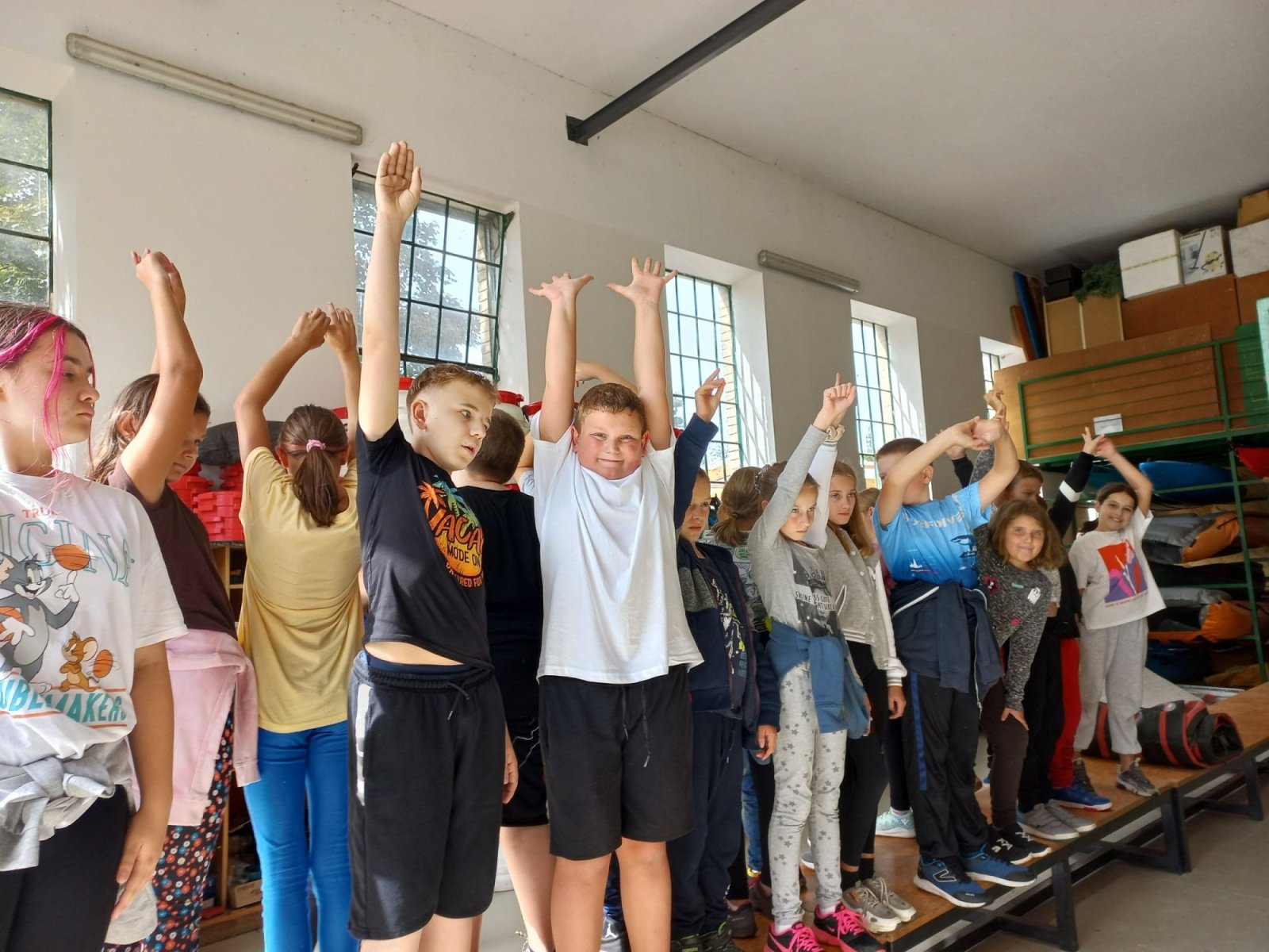 Paní učitelky, paní asistentky a žáci z 5.A a 5.B
