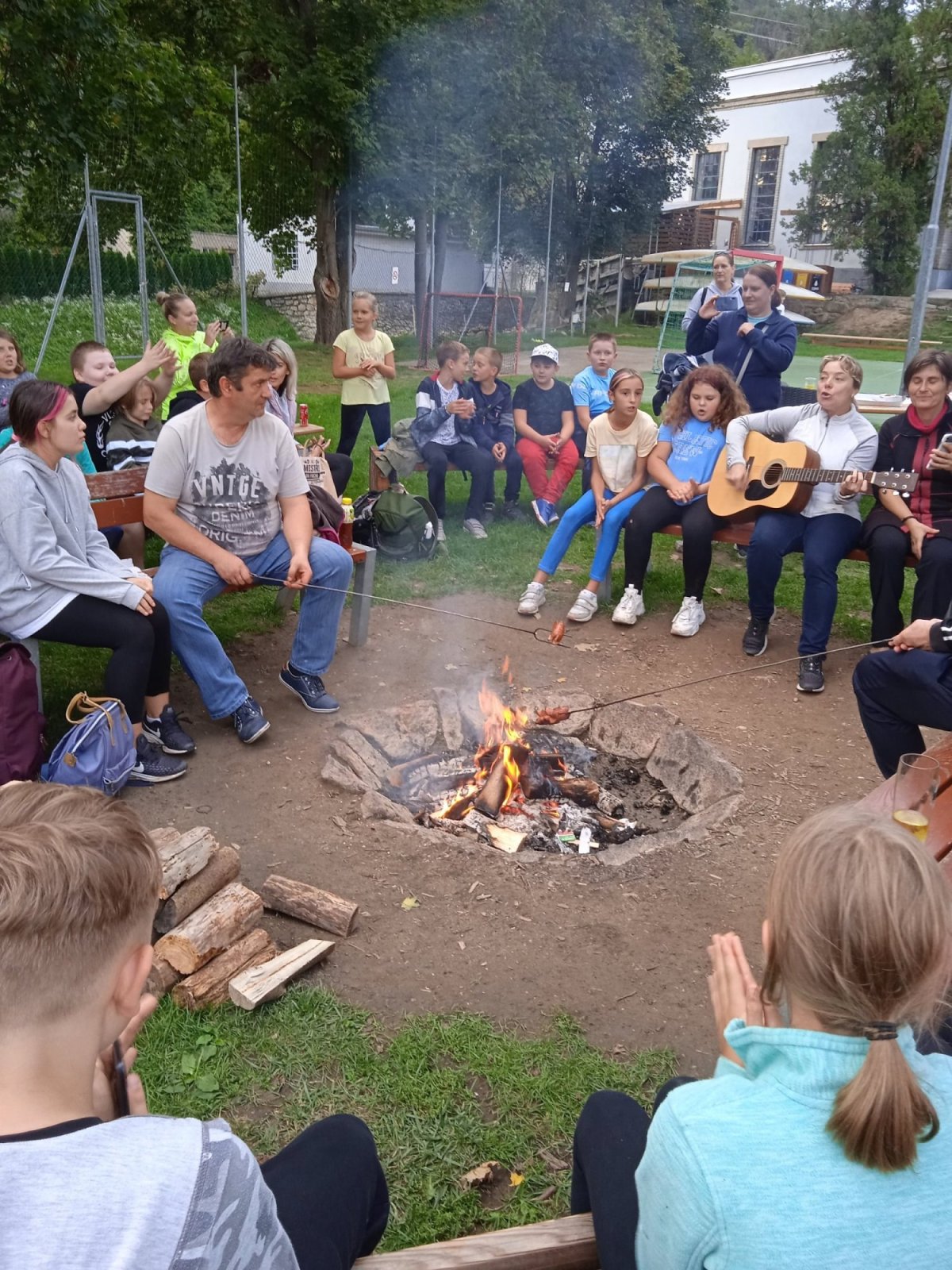 Po příchodu na Vodárnu na děti čekal zajímavý program - společné hry na utvoření pevnějších sociálních vazeb ve třídě, sportovní hry a vycházka Gránickým údolím. Velkou radost nám udělala i účast většiny rodičů na společném podvečerním posezení. Opékali jsme špekáčky a zpívali písně u táborového ohně. Poté, co jsme se rozloučili s rodiči, začalo naše další dobrodružství. Cestou do školy i přes prvotní strach všichni zvládli Stezku odvahy a spaní v tělocvičně bylo pro všechny dalším zážitkem i odměnou.
