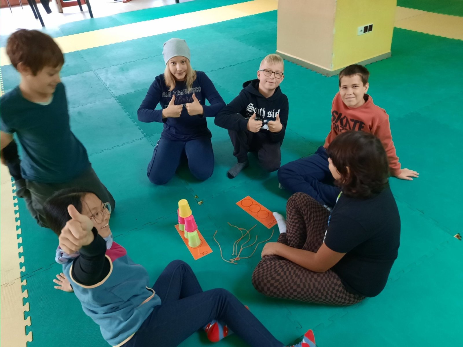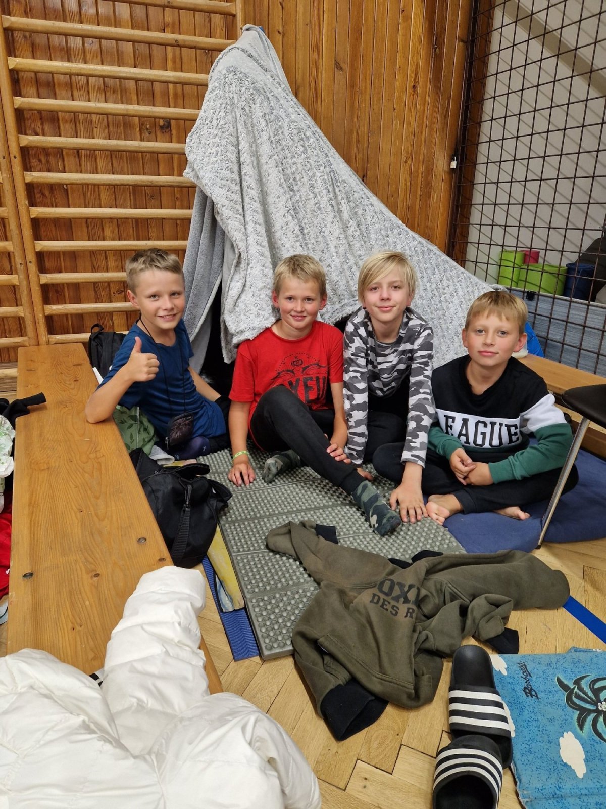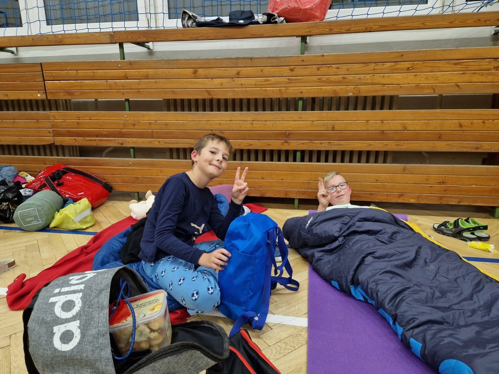 Druhé ráno přišlo rychleji, než jsme čekali. Ale bylo tu. Tentokrát proběhla nejen hygiena u dětí, ale vymetalo se i brambůrkové smetí z rohů tělocvičny. Teplý čaj a vlastní snídaně v jídelně školy bodla všem.