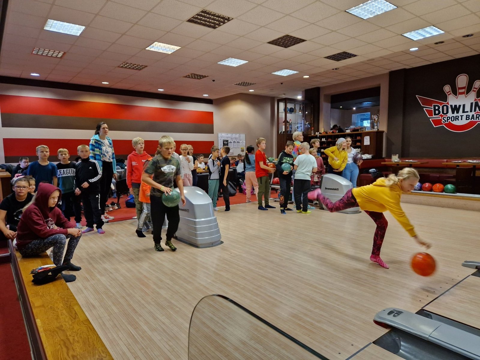 Po uvážlivém přepočítání členů výpravy proběhl nákup svačiny, cesta do lesa, konzumace, cesta z lesa a bowling. Zahráli si všichni, hlavně koule. Ty končily úplně všude, naštěstí bez újmy na zdraví. Při návratu jsme si ještě odbyli povinných deset minut deště (děti se mají vracet špinavé) a rozešli jsme se k obědům.