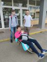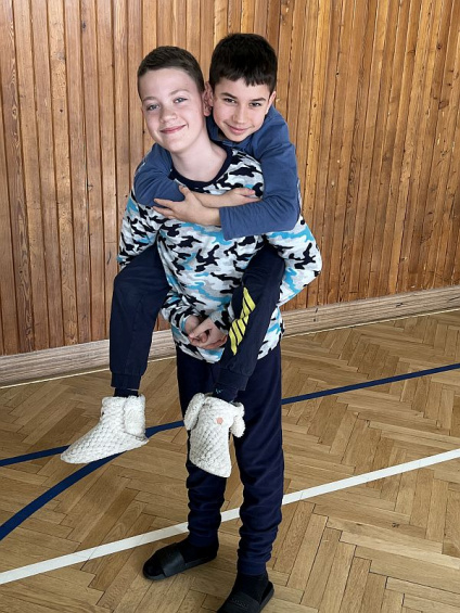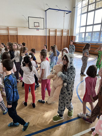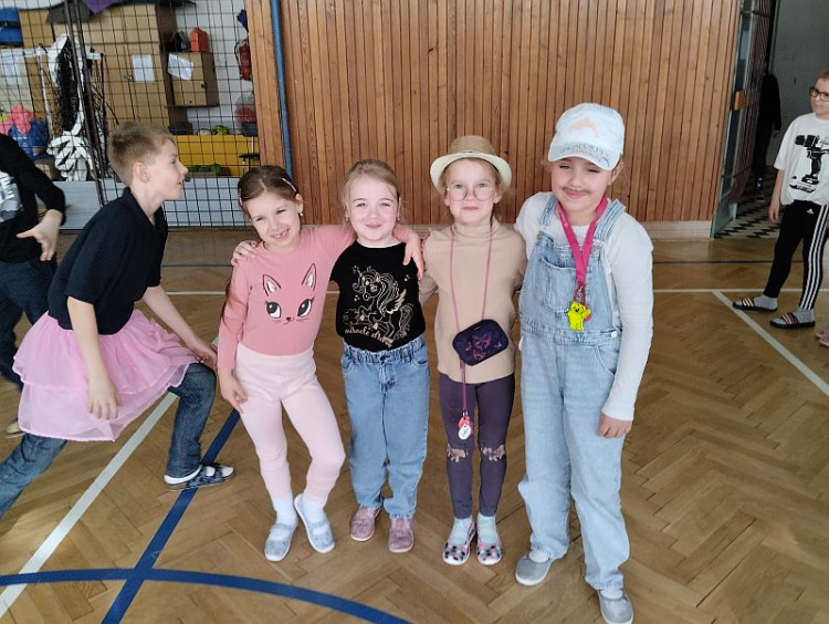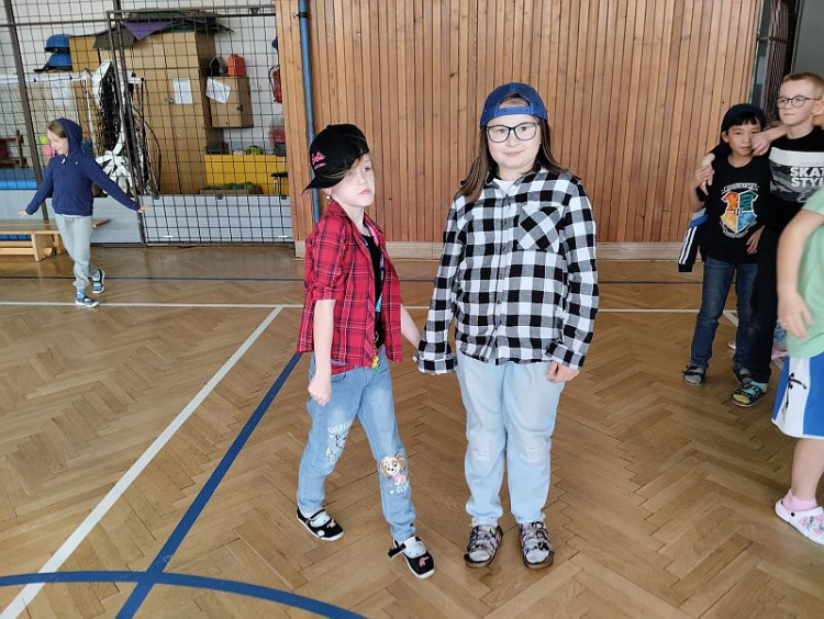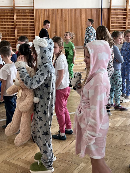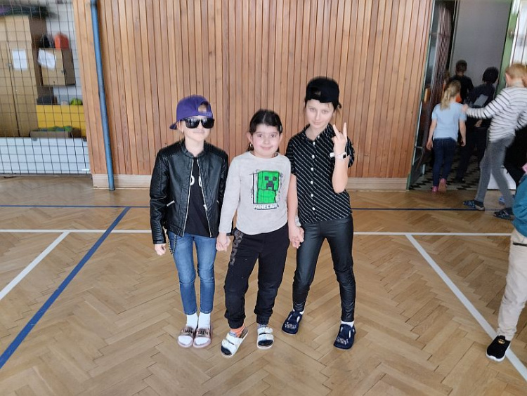 Na fotografiích můžete vidět, jak si žáci jednotlivé dny s názvy Den šílených účesů a pokrývek hlavy, Pyžamový den, Den naruby a Den bez batohů užívali.