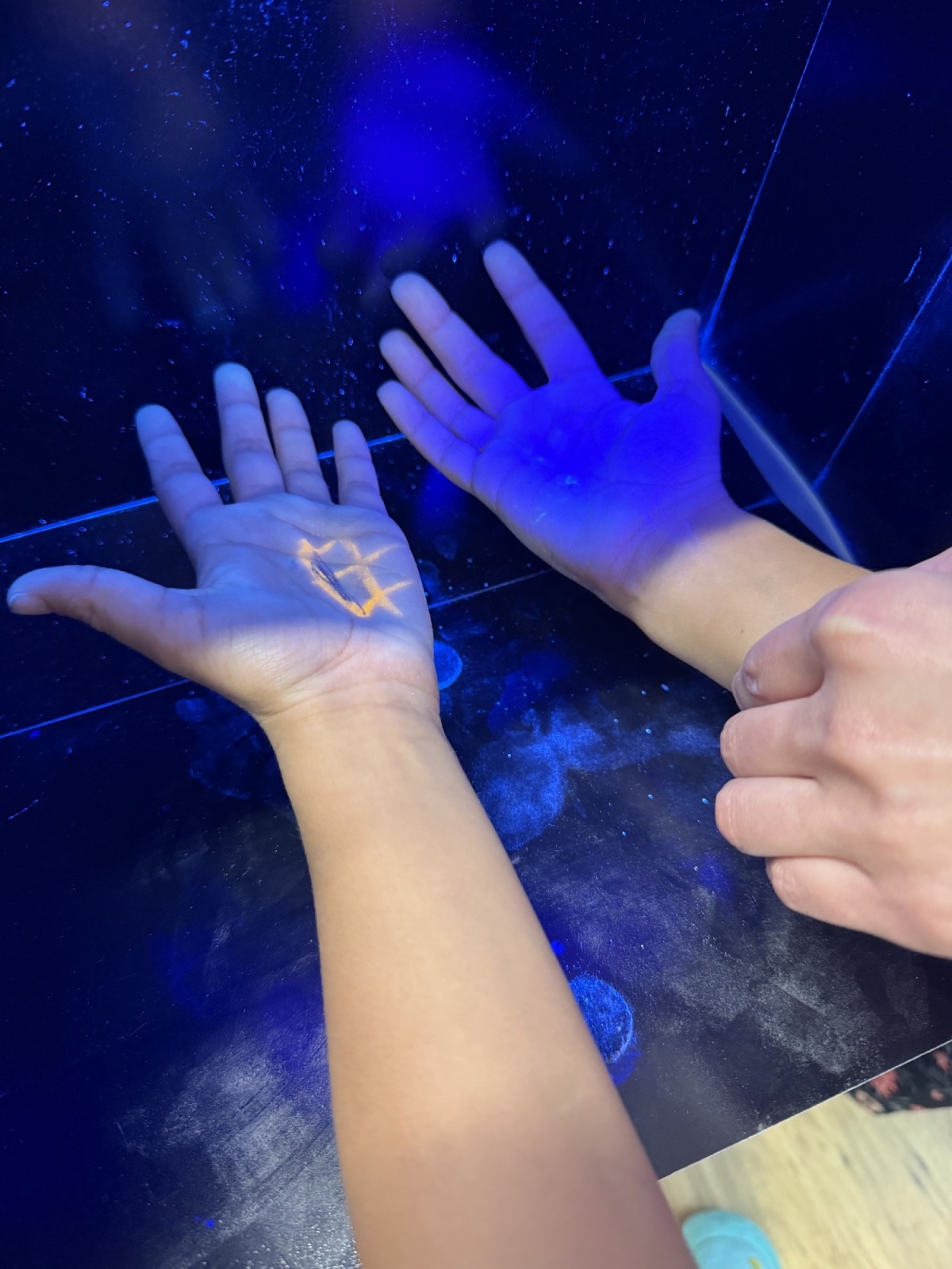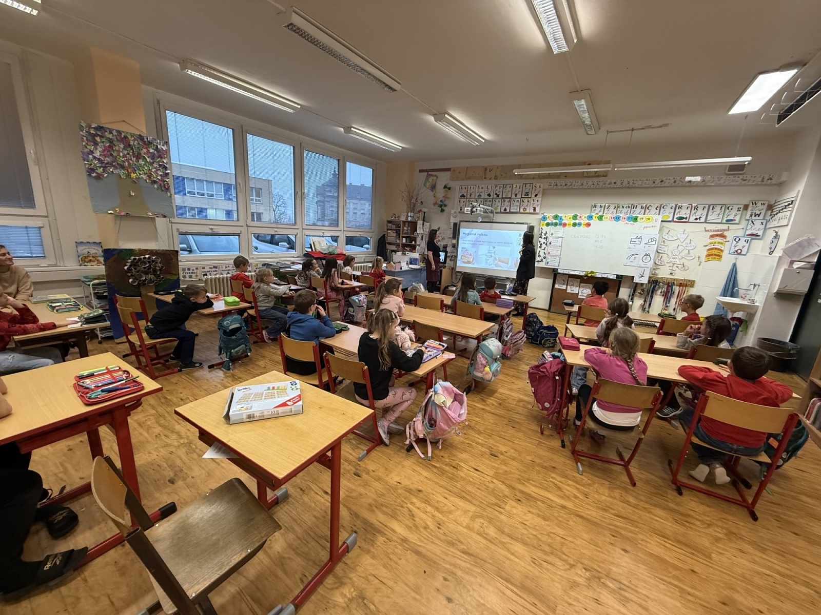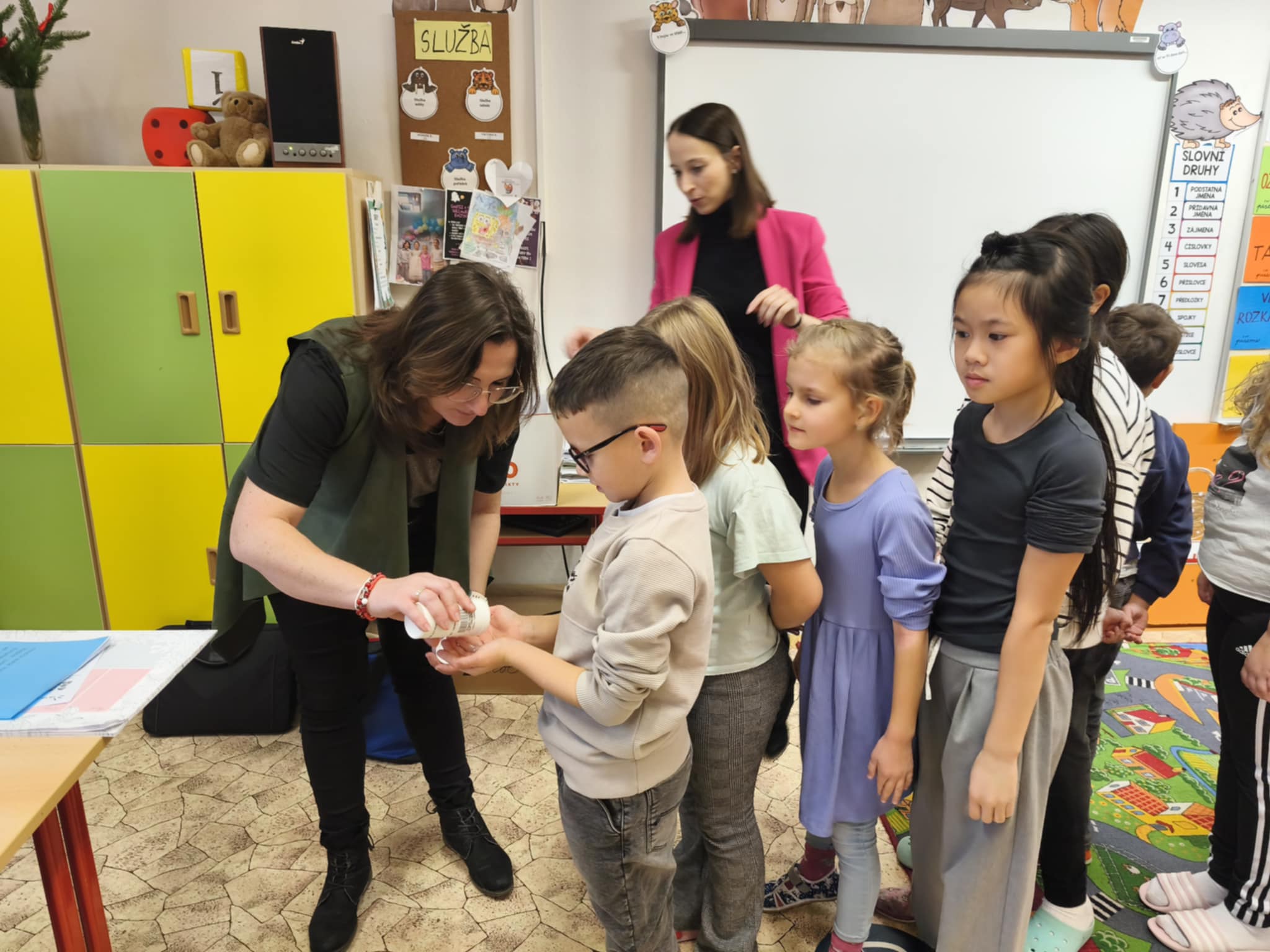Velkým zážitkem byl pro děti speciální přístroj, který pomocí UV světla ukáže, zda jsou ruce opravdu dobře umyté. Žáci si nejprve ruce umyli a poté pod přístrojem zjistili, zda někde nezůstala „nečistá místa“. Tato praktická ukázka děti velmi bavila a zároveň jim pomohla uvědomit si, jak důkladné mytí je důležité.