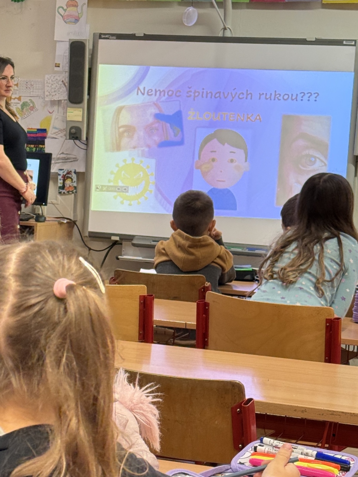 Děti se dozvěděly, že na našich rukou se během dne může usazovat velké množství bakterií a virů. Pokud si ruce neumýváme pravidelně a správně, mohou se snadno dostat do našeho těla – například při jídle nebo dotyku obličeje. To může způsobit různé zdravotní problémy, včetně žloutenky typu A, která se často přenáší právě špinavýma rukama.