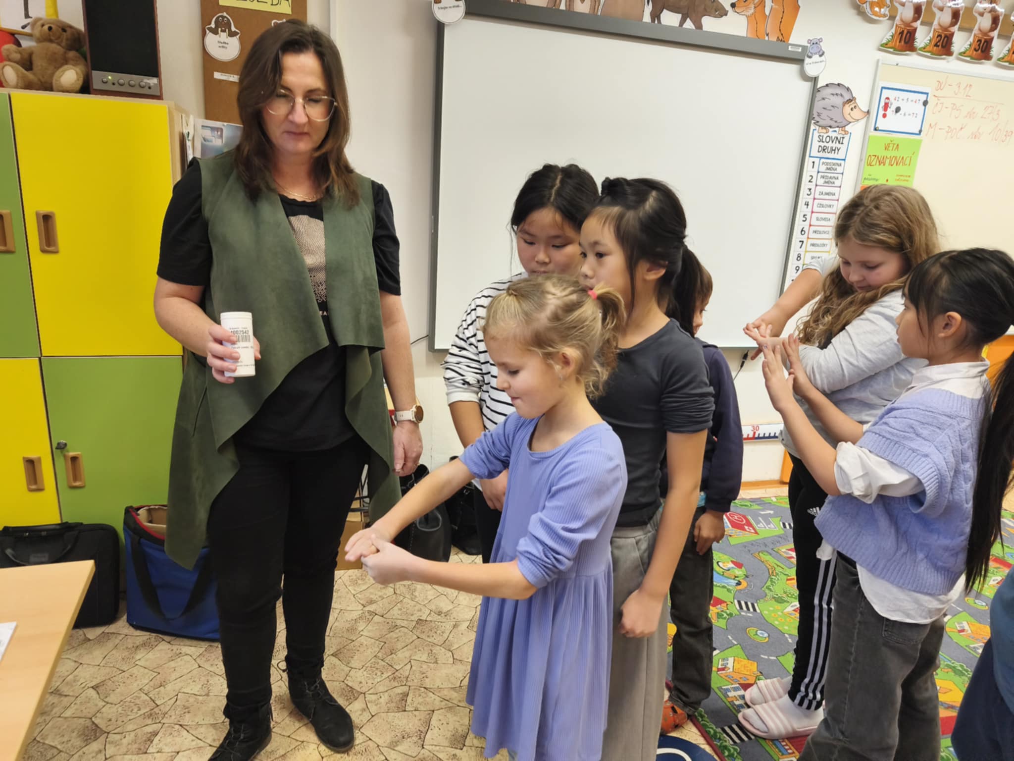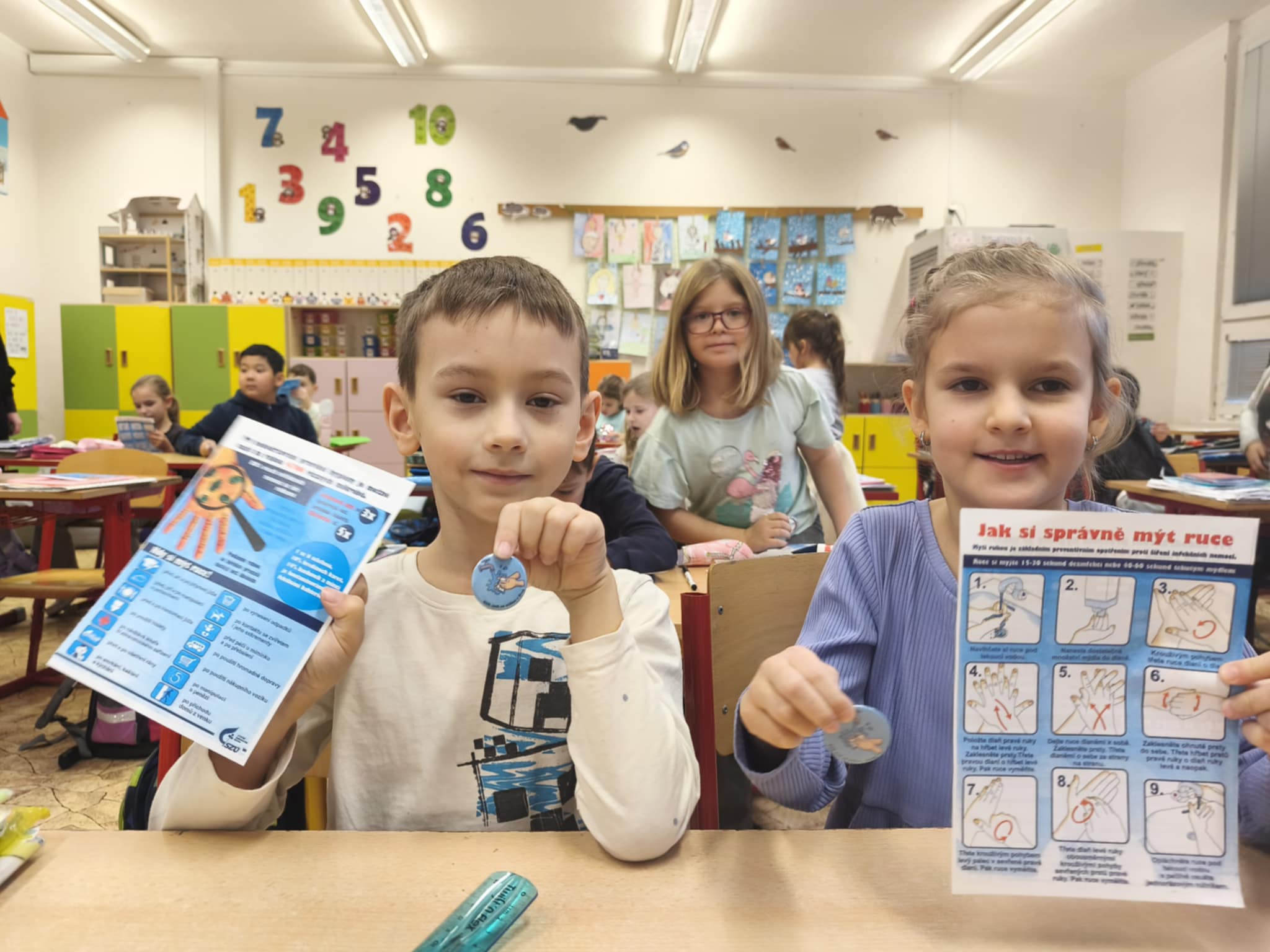 Součástí programu bylo i naučení správného postupu mytí rukou. Děti si krok za krokem ukázaly, jak dlouho a jakým způsobem si ruce mýt, aby byly opravdu čisté – nezapomnělo se na dlaně, hřbety rukou, prostory mezi prsty ani palce.