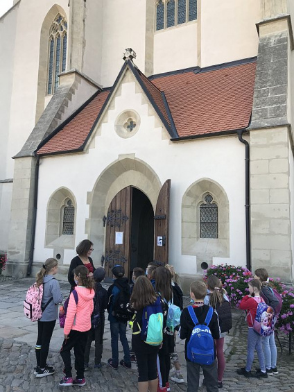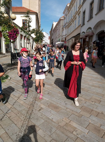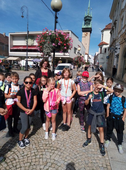 V tento den na téma Historie v pověstech. Informační centrum ve Znojmě si pro naše žáky připravilo zajímavou, poučnou i zábavnou procházku se zastávkami na místech, která se vážou ke znojemským pověstem. Začali jsme pověstí o výstavbě střechy radniční věže, dozvěděli se „jak to bylo“ se Znojemskou Libuší. Poté nás průvodkyně zavedla na místo, kde uklouzl kůň panovníka Zikmunda, panovník dostal mrtvici a my se tak dozvěděli o jedné z verzí jeho smrti, které podle pověstí nastaly ve Znojmě ještě třikrát. Následně měly děti za úkol uhodnout, která z těchto pověstí byla pravdivá. Která to byla? Děti ze 3. ročníku to vědí, tak se jich zkuste zeptat! Naše pouť končila opět u radniční věže a děti mohly vystoupat přímo na její vrchol. Pro některé z nich to byla první návštěva této téměř sedmdesátimetrové věže. Byl to velmi vydařený den.