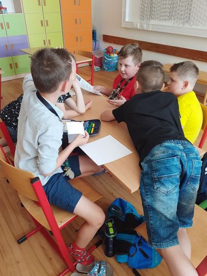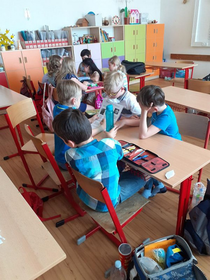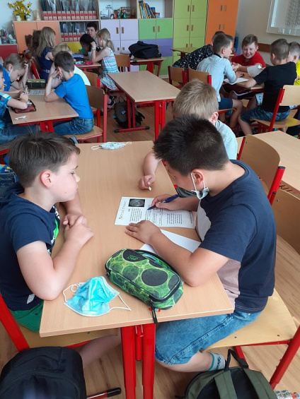 kolem kterého obíhají planety. Tomuto tématu jsme se věnovali během projektového dne na téma Vesmír. Protože jsme se nemohli vydat do planetária, přijelo planetárium k nám do školy. Zhlédli jsme velmi zajímavý film o planetách, souhvězdích, kometách nebo meteoritech. V závěru měly děti spoustu zvídavých otázek týkajících se černé díry, měsíců nebo planetárních prstenců.