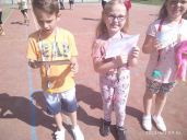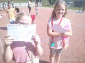 Děti 1. stupně si plně užily sportovních a pohybových aktivit, jimiž je provázeli jejich kamarádi z 9. B. Velmi se líbilo srážení kuželek, hod na koš, běh přes překážky, přenášení míčku na pálce a mnoho dalšího. Po výkonu čekala všechny zasloužená sladká odměna a příjemný den dětem jistě dodal mnoho nové energie do těch posledních pár týdnů, které nám zbývají do konce školního roku. Příjemné zpestření přinesl i taneční soubor Mighty Shake, jenž dětem předvedl zajímavé taneční vystoupení.