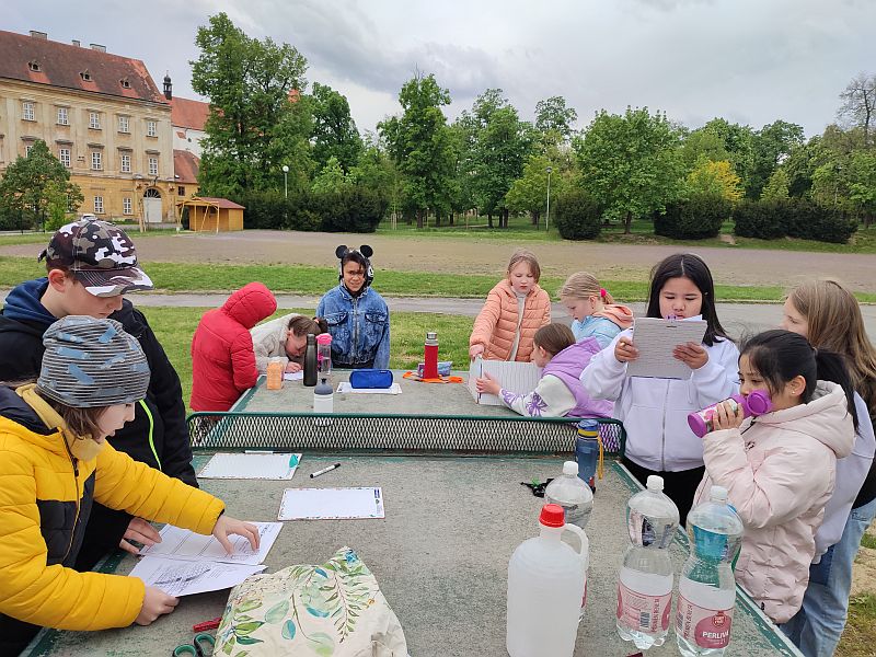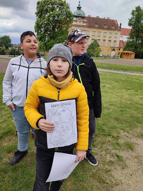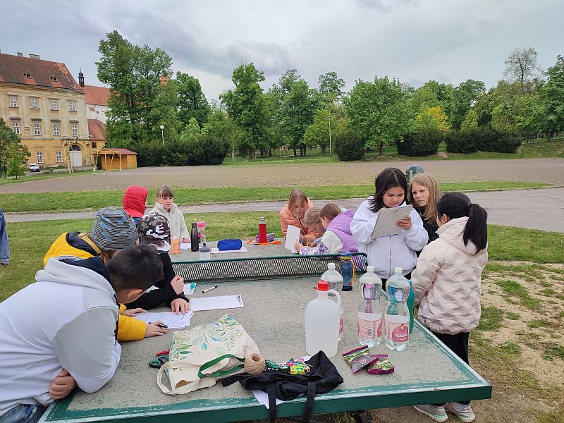Celý týden jsme zakončili na školním hřišti, kde pro nás paní učitelky přichystaly různé aktivity. Jednou z nich byla únikovka, při které jsme pomocí indicií vyluštili šifru a díky ní jsme našli ostrov s vodou. Další aktivitou byl kvíz na téma živočichové a rostliny v našem ekosystému.