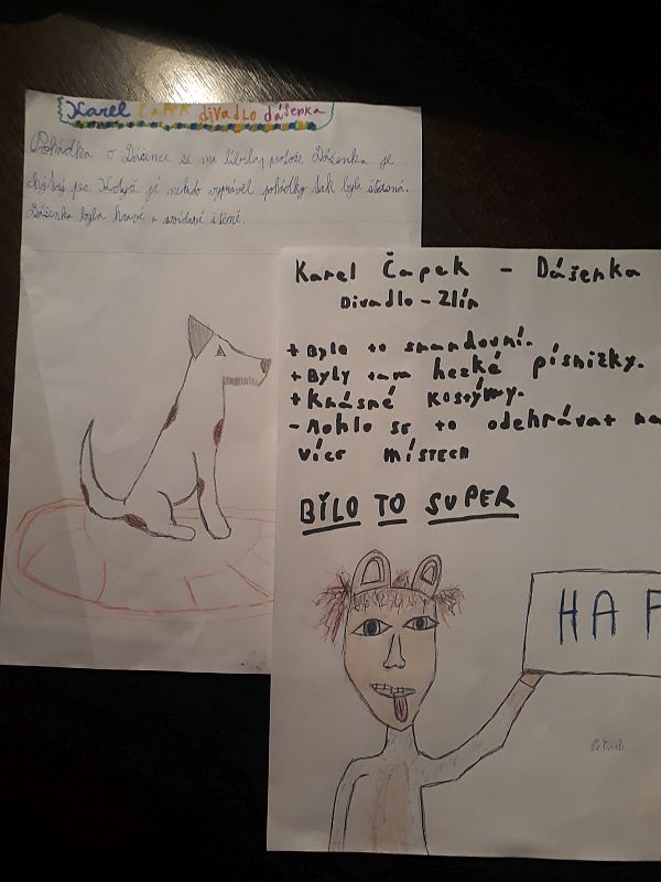 Pohádka Dášenka čili život štěněte od Karla Čapka byla letos první kulturní akcí, kterou děti mohly společně vidět přímo ve škole. Jak se jim představení líbilo, napsaly a namalovaly ve svém zhodnocení v hodině čtení.