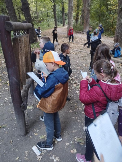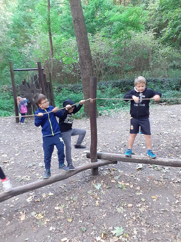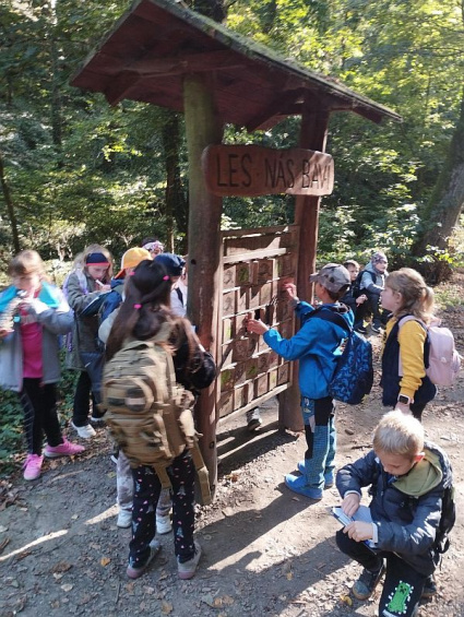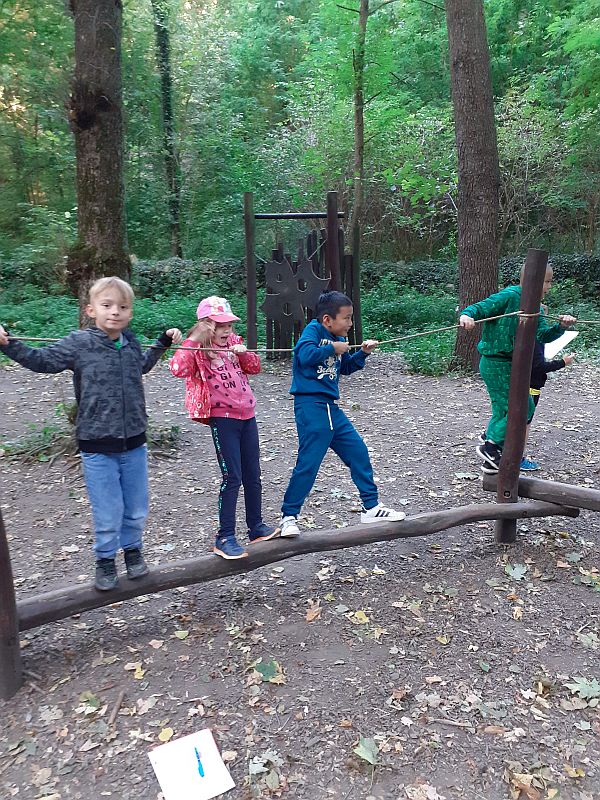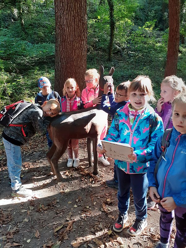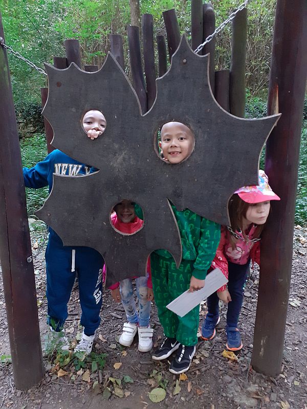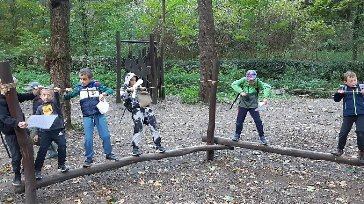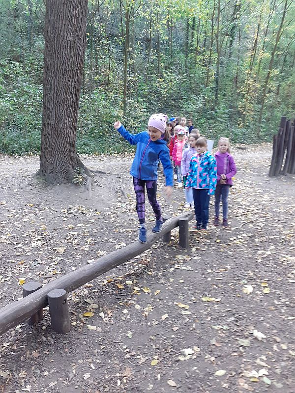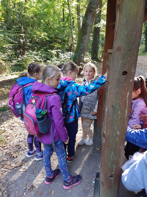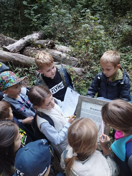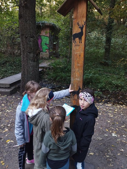 Takže jsme vyrazili do Gránic na poznávací výpravu. Začali jsme při vstupu do Gránického údolí - na hřišti, kde děti poznávaly zvířata a stromy v lese. Žáci porovnávali skutečnou velikost zvířat, zjistili, jak daleko některá zvířata doskočí a mohli s nimi porovnat své síly. Děti pracovaly ve skupinkách, mohly si vzájemně poradit a pomoci a také se učily vzájemně spolupracovat. Po cestě získávaly další informace o lese a jeho obyvatelích a celá výprava byla zakončena dřevěným pexesem, sběrem přírodnin a chutnou svačinkou.