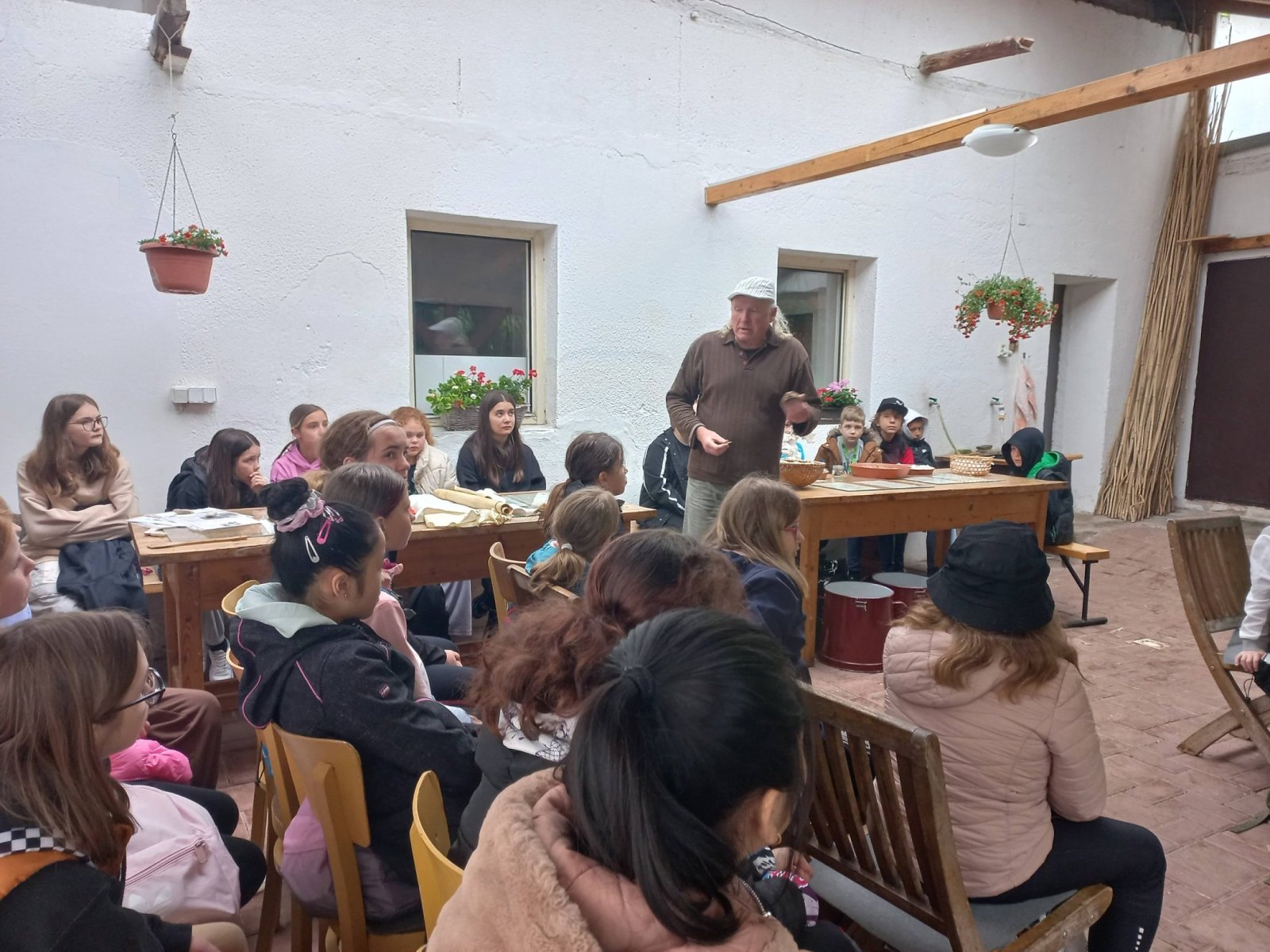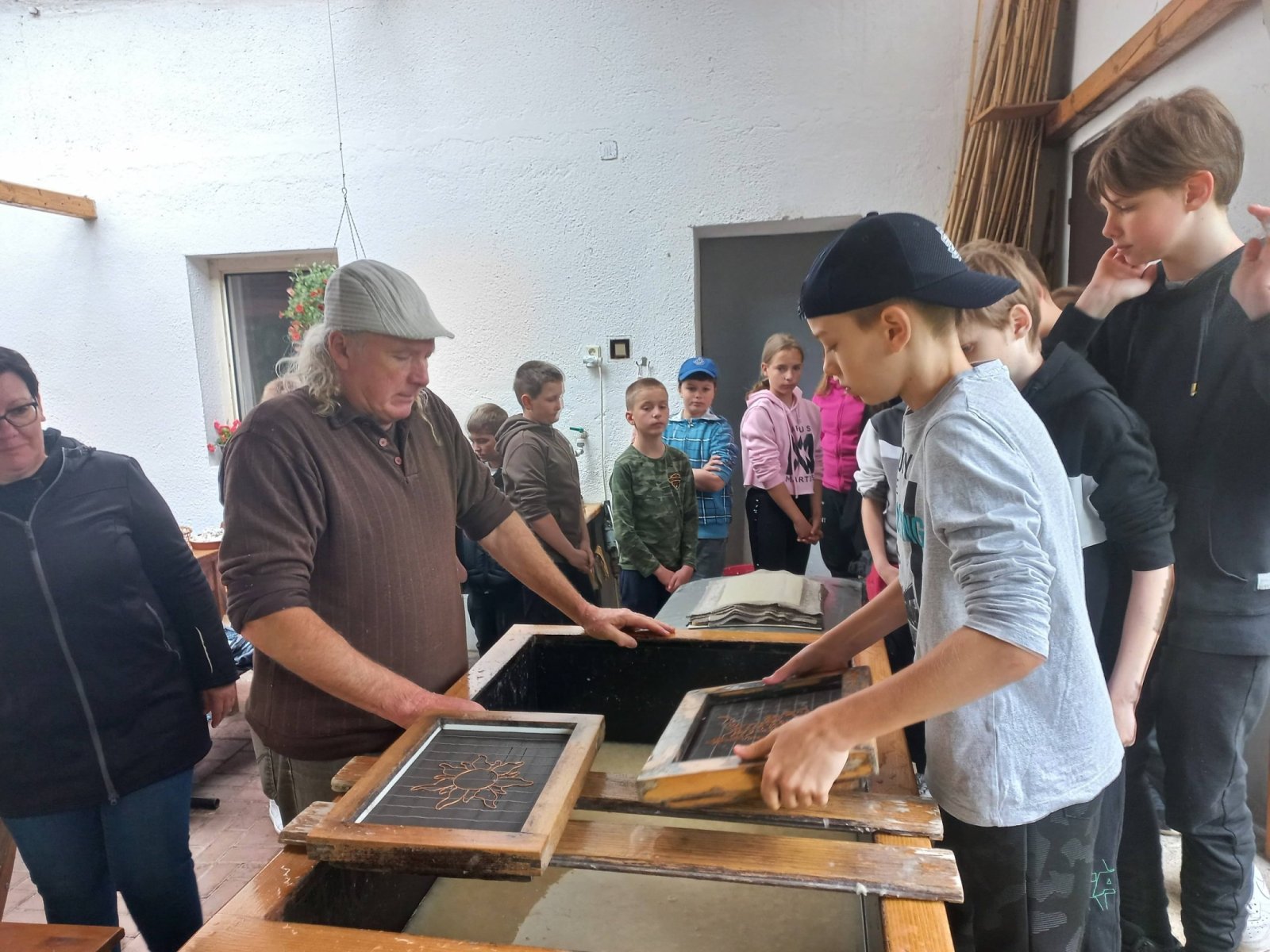 V první části programu se žáci dozvěděliaktur spoustu zajímavých informací o historii a principech výroby papíru. Poté nás majitel provedl provozem, kde se papír vyrábí tradičním manufním způsobem. V poslední části si každý žák vyrobil vlastnoručně papír i s originálním znakem a v případě zájmu zakoupil suvenýry v podnikové prodejně.