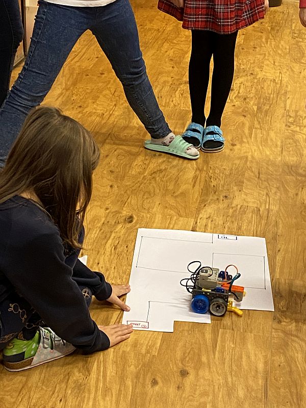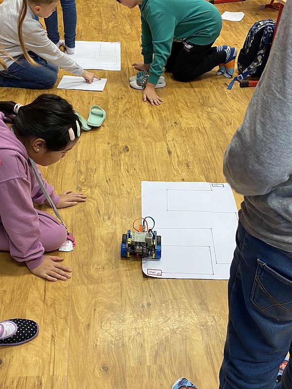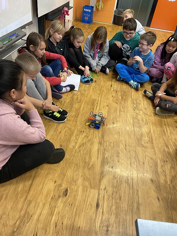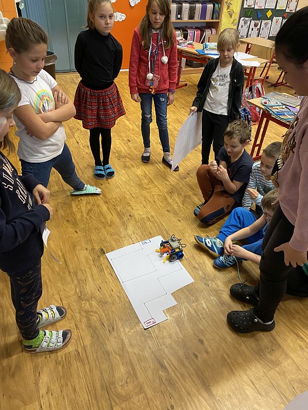 Nejprve děti hádaly, který geometrická obrazec robot vykroužil, aby se seznámily s tím, jak jezdí a pracuje. Poté dostaly do skupinek dráhy. Musely Vexíkovi změřit a naplánovat cestu tak, aby dojel ze startu do cíle. Kluci a holky museli měřit, přemýšlet na správným zatočením, spolupracovat ve skupině a vzájemně si pomáhat. Všechny práce s robotem moc bavila.