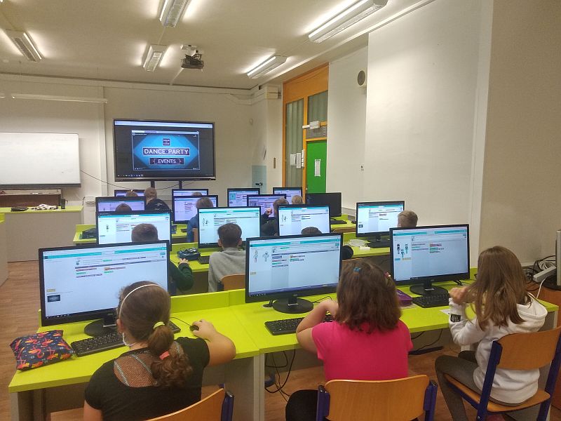 Cílem této akce bylo přivést žáky k programování a rozšířit tak jejich digitální gramotnost. Žáci se hravou formou seznámili s jednoduchým programovacím jazykem a vyzkoušeli si naprogramovat svoji postavu - tanečníka. Pokud se jim úkol podle zadání podařil, mohli se posunout o úroveň výš.