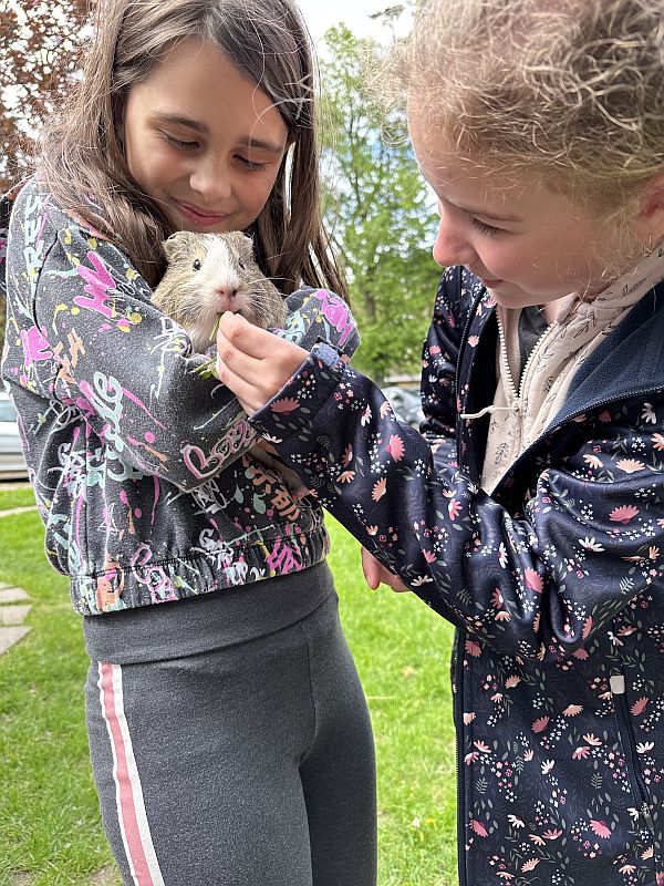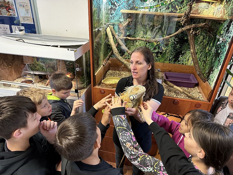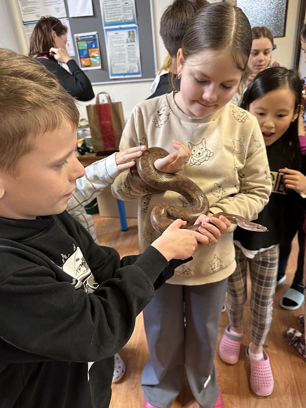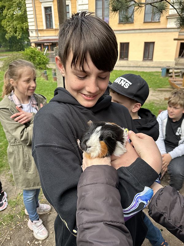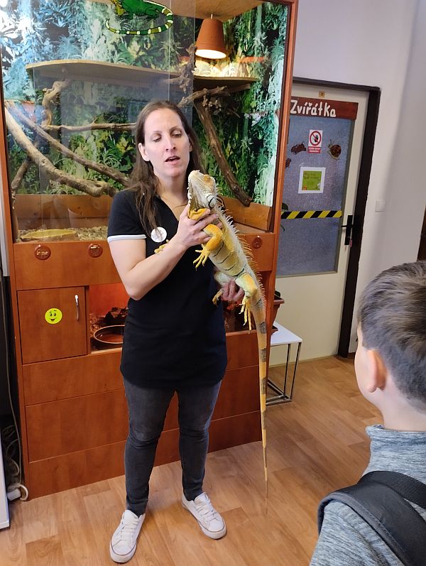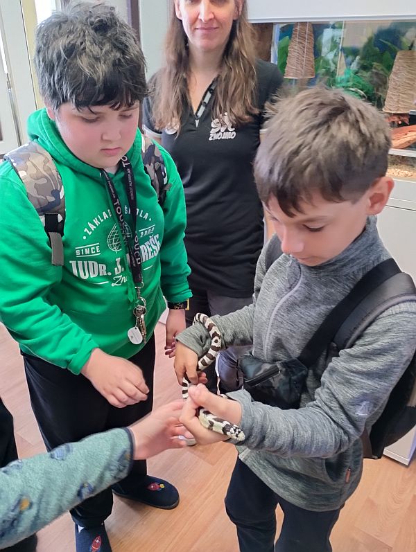 Využili jsme nabídky SVČ Znojmo, které ve spolupráci s Městskou policií Znojmo připravuje program Kamarádi a můj volný čas. V rámci tohoto programu se děti seznámily zážitkovým způsobem s nabídkou kroužků, táborů a jiných aktivit. Nahlédly do truhlářské dílny, rybářské učebny, tanečních sálů, hudebních místností, ale i herny, kde úplně zapomněly, že jsou již čtvrťáci a pustily se s vervou do balonkové bitvy. Nejvíce se jim však rozzářily oči v zázemí chovatelských koutků. Mazlíčci tradiční, jako králíci, morčata, křečci, myši, šli z ruky do ruky. U některých netradičních mazlíčků se již ozývalo výskání. Odvážlivci si nechali obtočit hada kolem ruky, pohladili leguána zeleného nebo se nechali pošimrat strašilkou na dlani. Nádherný emocionální zážitek pro všechny. Zároveň se o těchto mazlíčcích děti dozvěděly mnoho zajímavého.