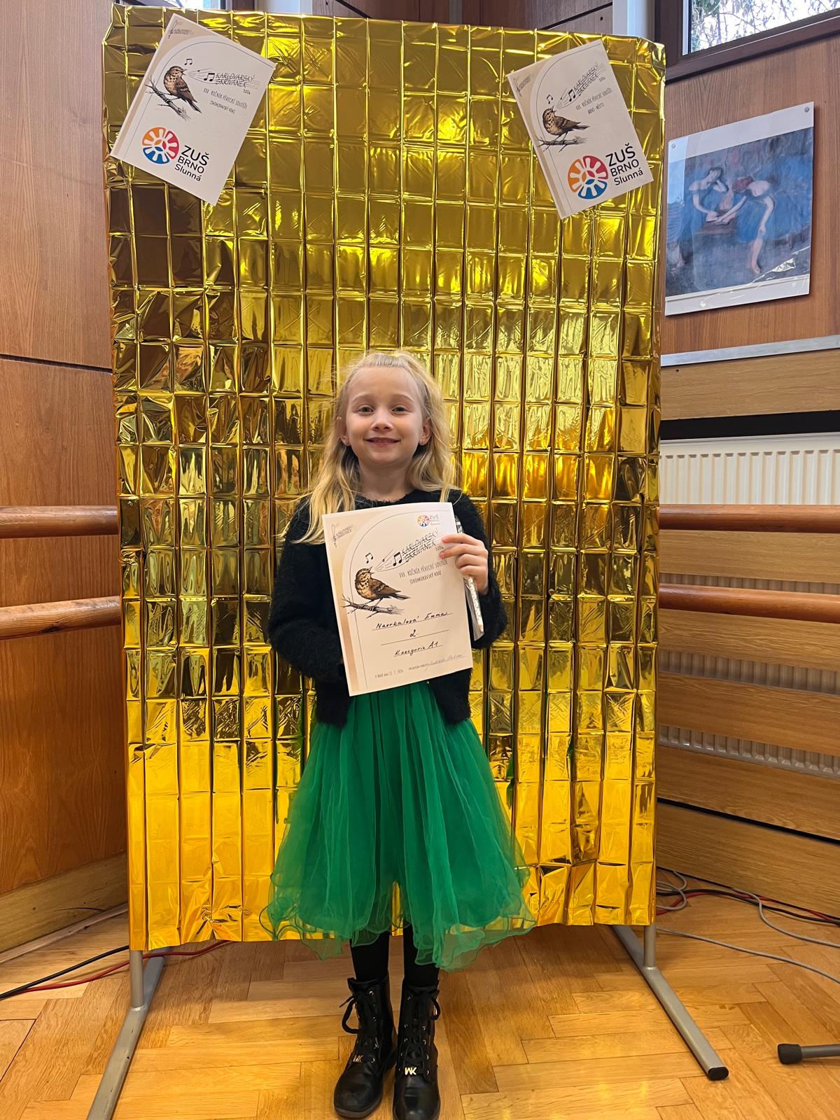 Emmě srdečně gratulujeme a děkujeme za krásnou reprezentaci školy. Přejeme jí mnoho dalších hudebních úspěchů a radosti ze zpívání.