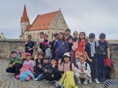 Na pomoc jsme si pozvali i jednu třídu třeťáků. Počasí sice nebylo zrovna nejlepší, ale měli jsme natolik štěstí, že dešťové kapky nás stihly jen, když jsme se vezli. Zážitků měly děti několik - nejdřív je trápil hlad, poté cesta Tremperkem, kdy jsme mysleli, že bude muset část z nás vláček opustit, no a samotným zakončením byl pobyt u rotundy, kde děti vyzkoušely prolézačky a dojedly zbytky svačinek od rodičů. Pak už nás čekala jen cesta ke škole, kdy pan řidič dával okolním chodcům hlasitě najevo, že právě jedeme!!!! S mírnou únavou a úsměvem na tváři jsme otevřeli dveře naší školy...