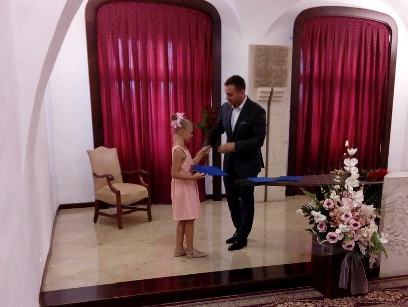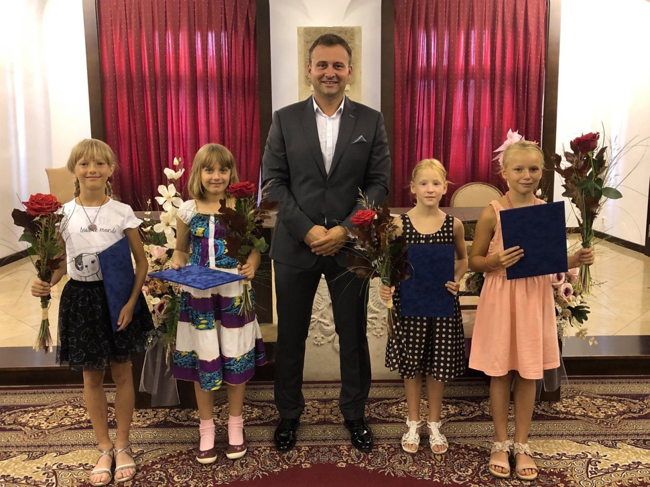 Naše děvčata Barbora Večeřová a Veronika Tvarůžková ze 3.D se zúčastnily slavnostního předání stipendia v rámci projektu Kolumbus 2. Pan starosta ocenil jejich umístění v celonárodních výtvarných soutěžích a tím i reprezentaci našeho města.