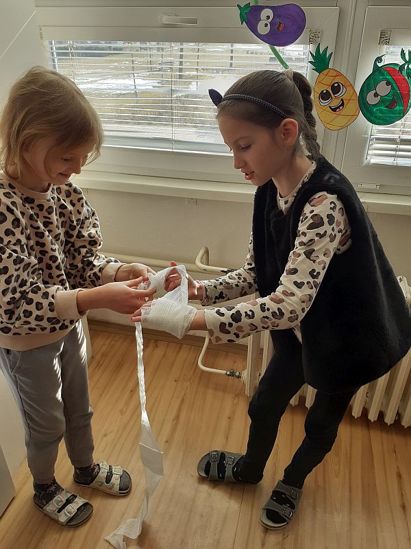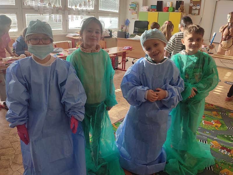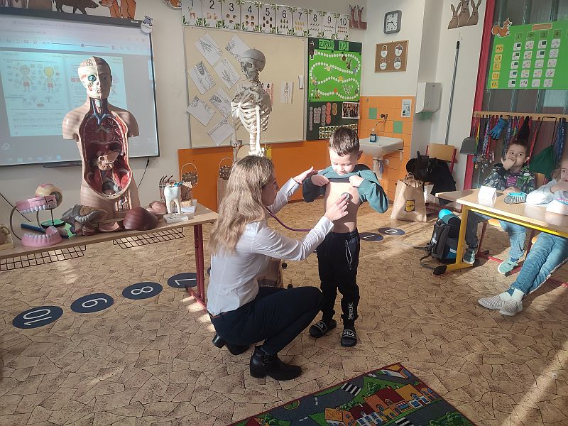 Prvňáčci se blíže seznámili se základními částmi lidského těla, se smysly a povídali si o dětských nemocech. Také si řekli, co by měla obsahovat lékárnička. Třeťáci zase více prozkoumali anatomii některých lidských orgánů a jejich funkce.