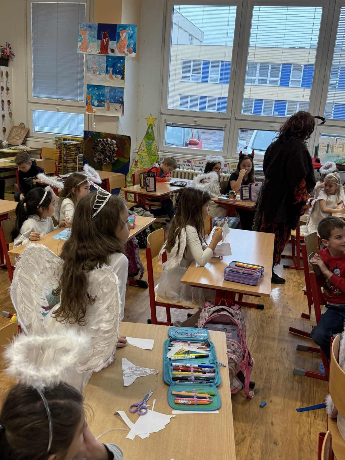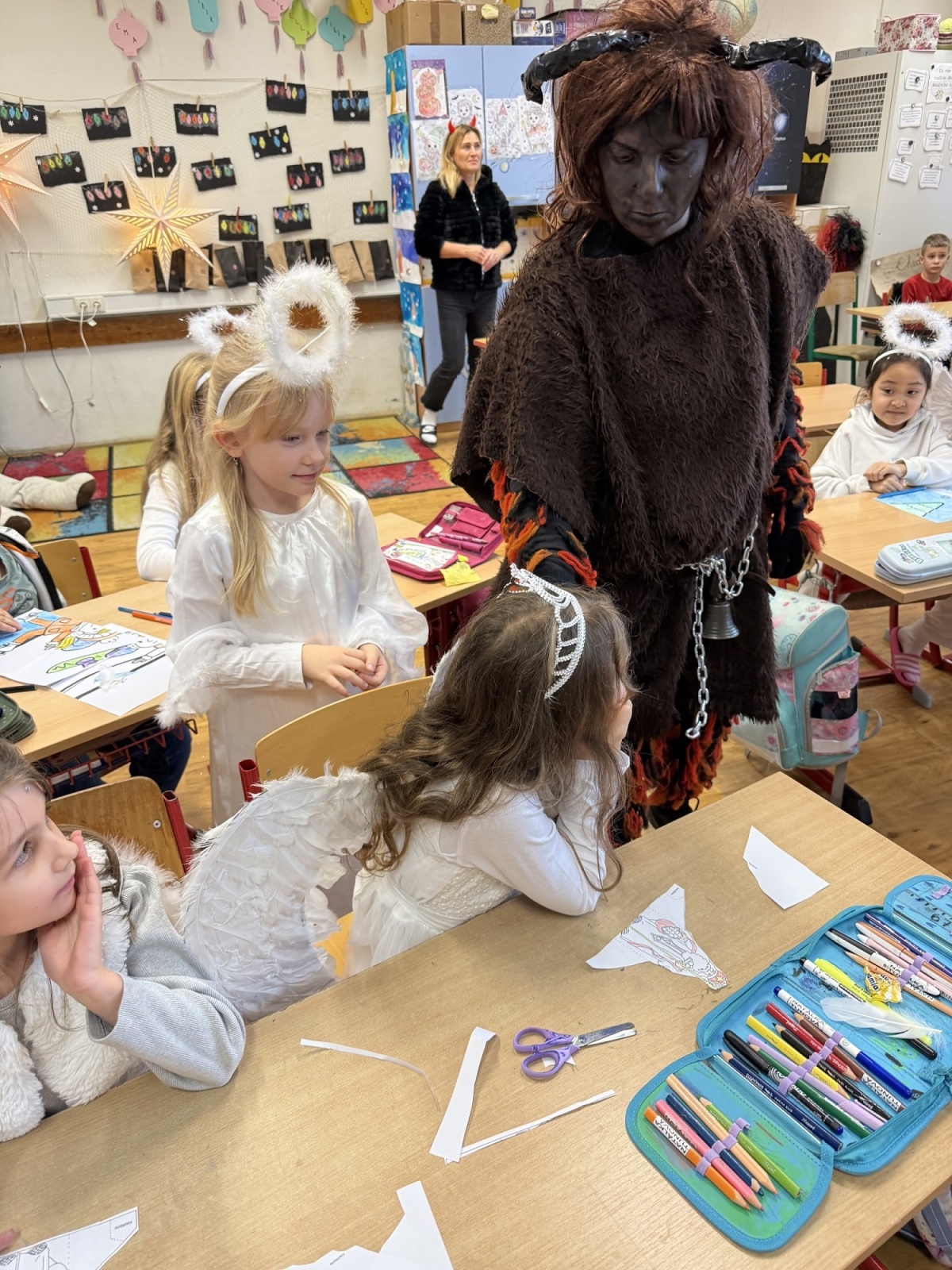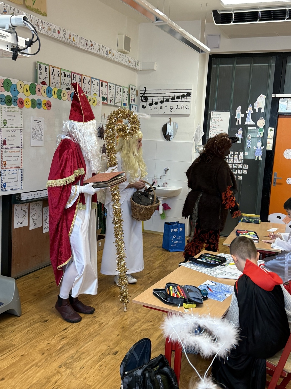 Mikuláš si s dětmi popovídal, vyslechl si básničky a písničky, které si připravily, a nakonec každého odměnil malou mikulášskou nadílkou. Anděl rozdával úsměvy a čert občas zazvonil řetězem, ale nikdo se nebál – vše probíhalo v přátelské a veselé náladě.