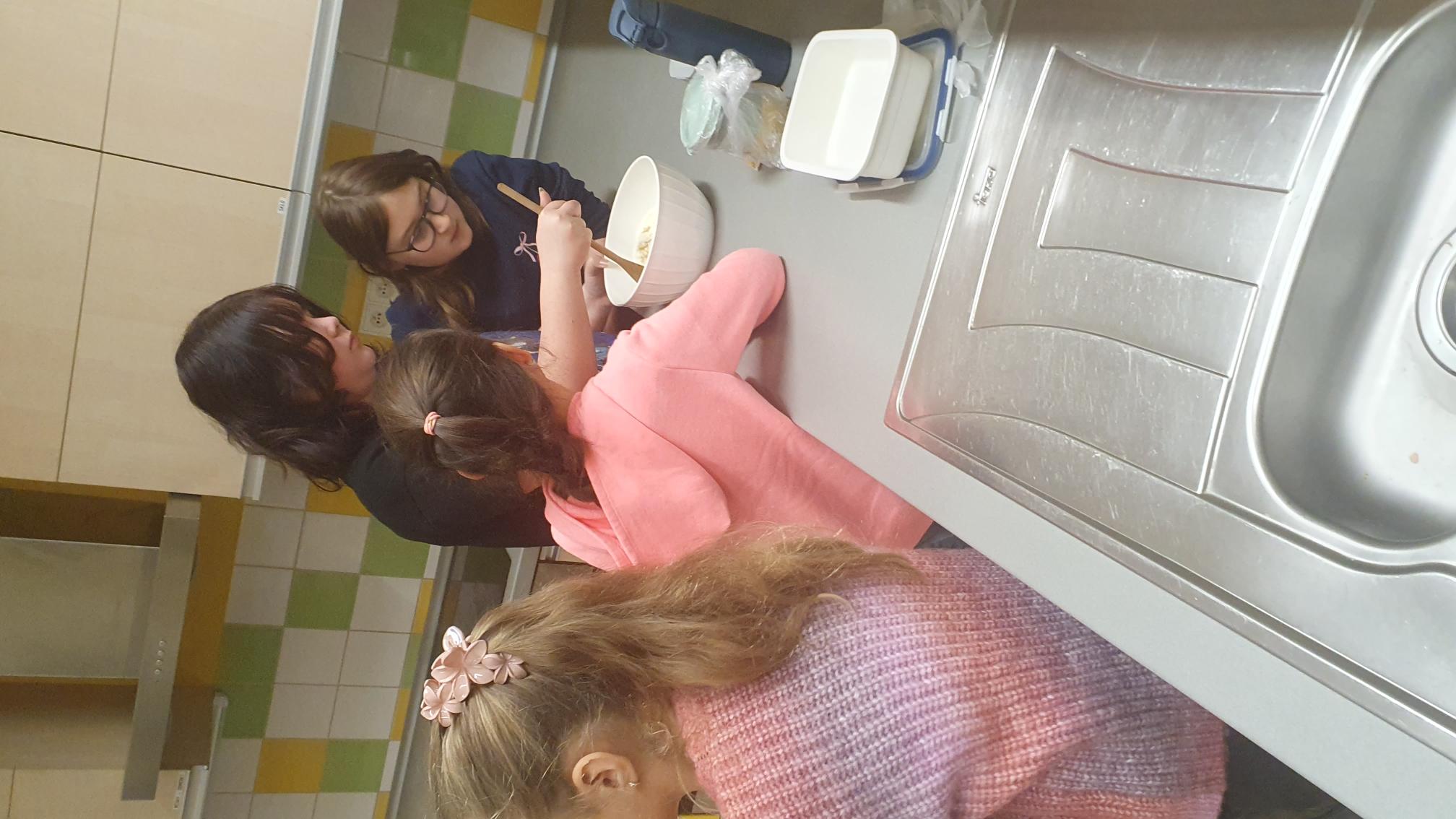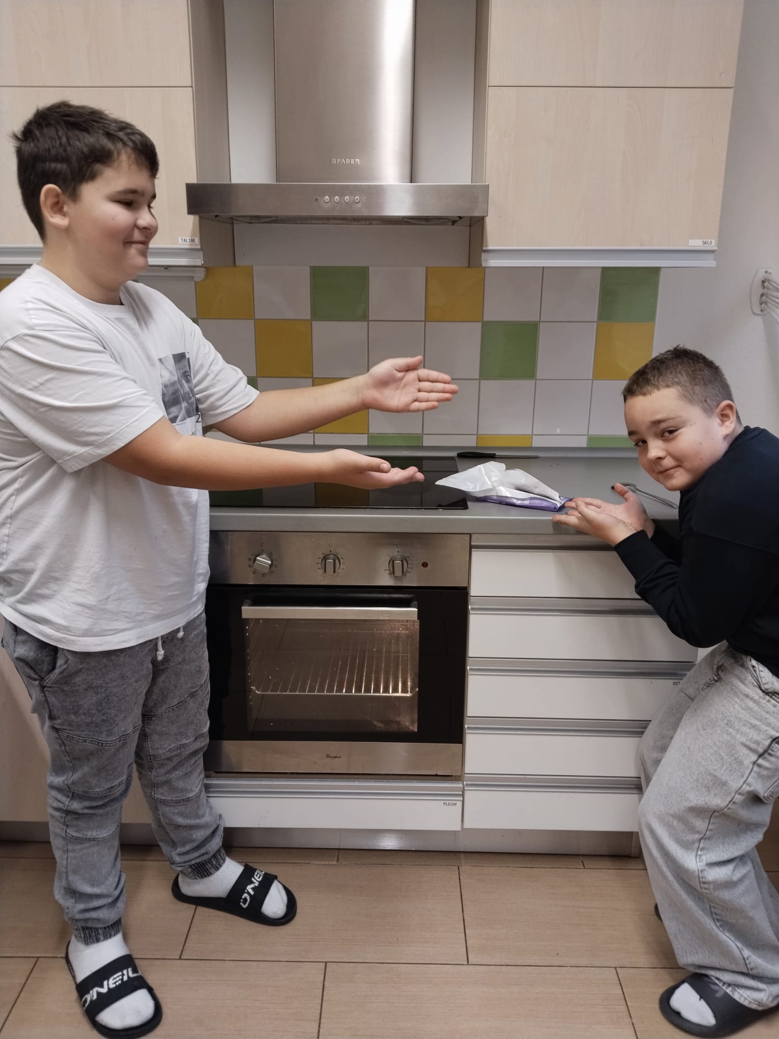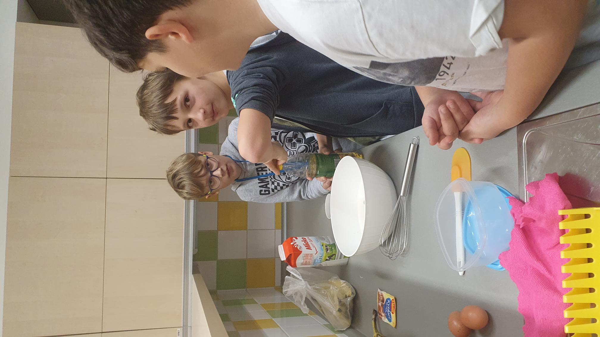 Ve středu se třída 5.D vydala do cvičné kuchyně, aby si vyzkoušela, jaké to je stát se na chvíli cukrářem. Dostali seznam surovin a dál už si museli poradit sami. A protože jsou šikovní, hned se pustili do práce. Všechno dali do mísy, míchali, přidávali a ochutnávali. Někteří si do těsta přidali banán, jiní čokoládu – fantazii se meze nekladly! No a muffiny byly na světě – opravdu se povedly! Pak už jen umýt nádobí, uklidit a hotovo. Těšíme se na další akci!