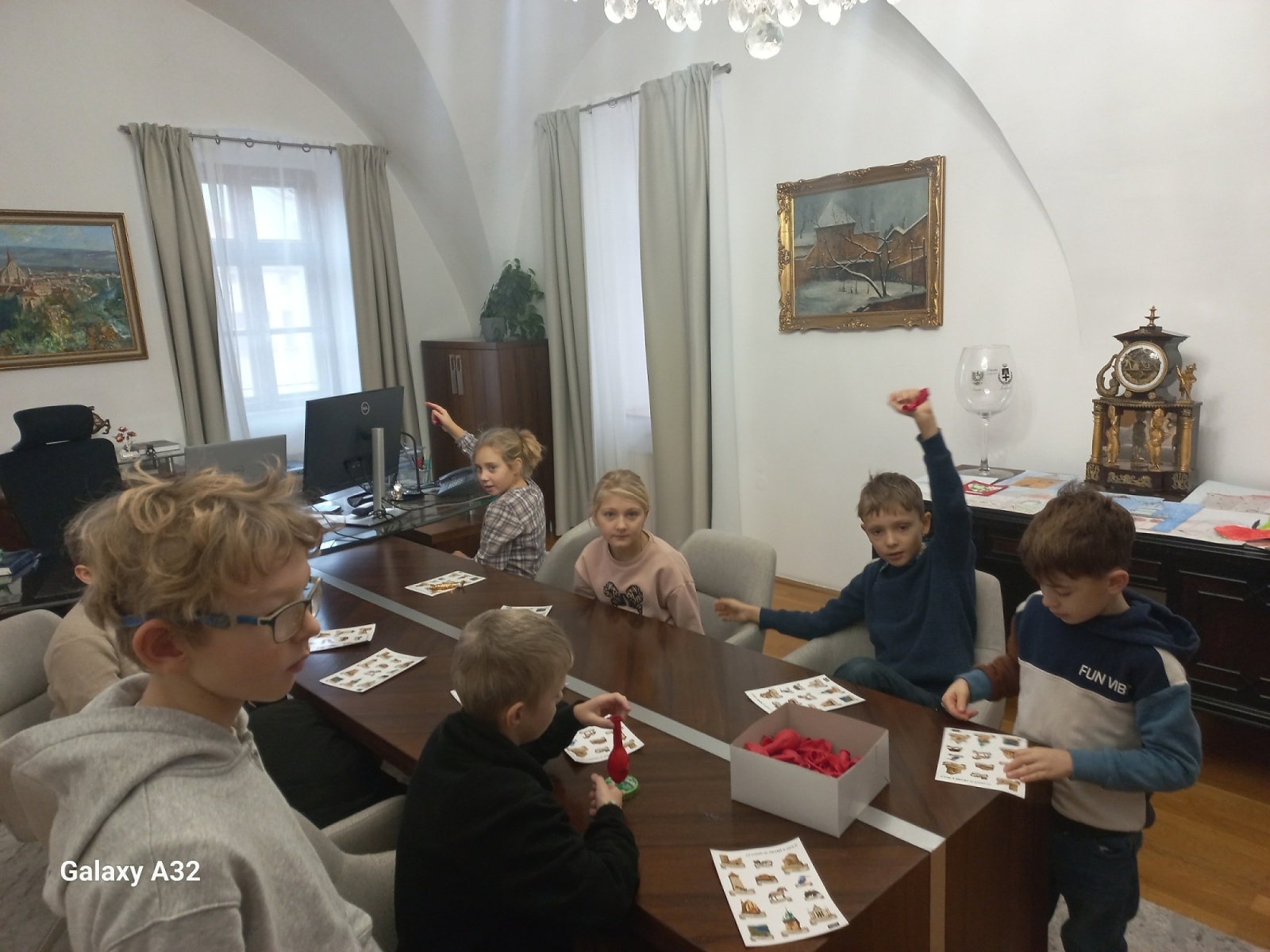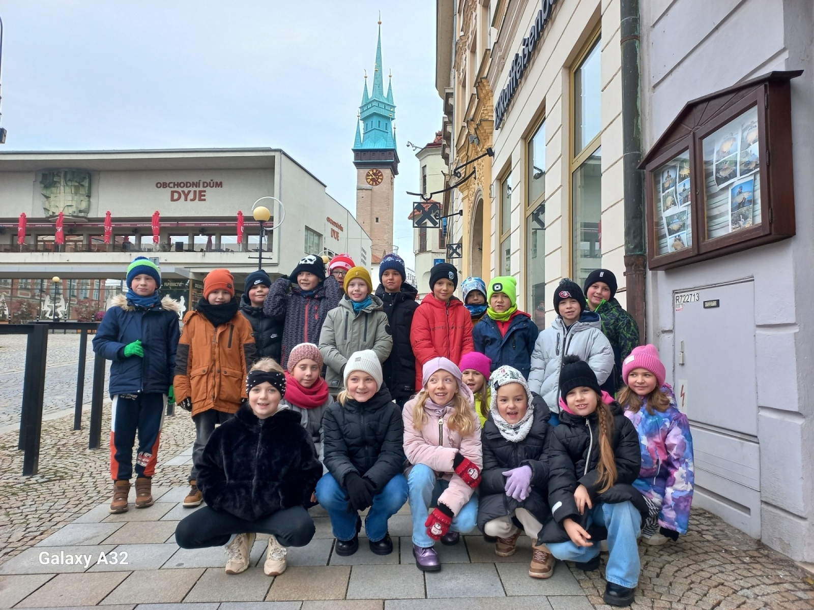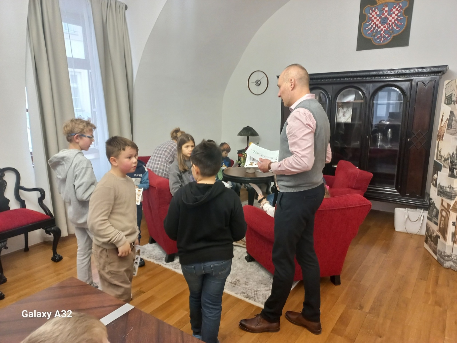 Na závěr čekalo třeťáky milé překvapení. Každý dostal nálepky s motivy znojemských památek, nafukovací balónky a také sladkou odměnu z „kouzelného šuplíku“ pana starosty. Atmosféra byla přátelská a děti odcházely nadšené a plné nových zážitků.