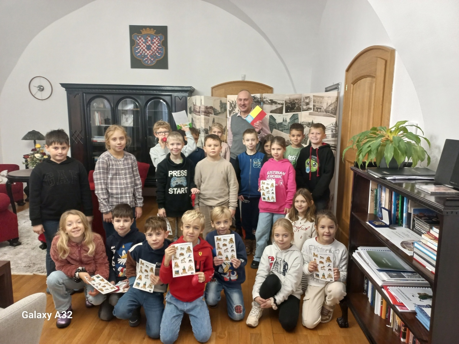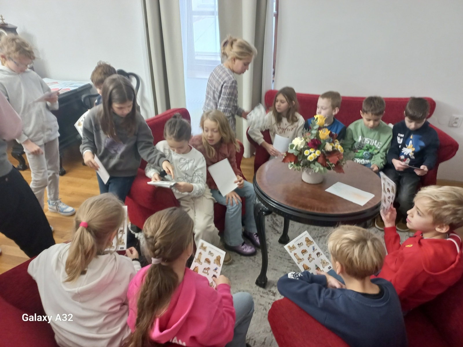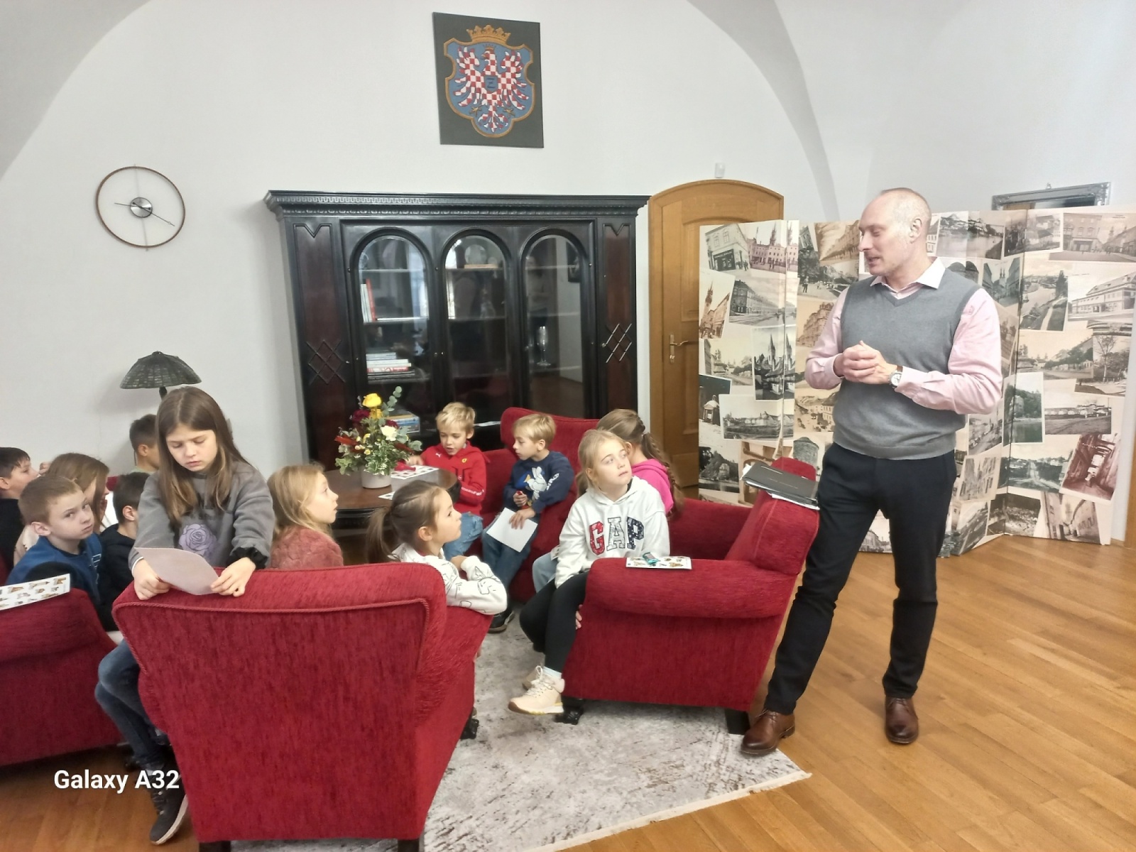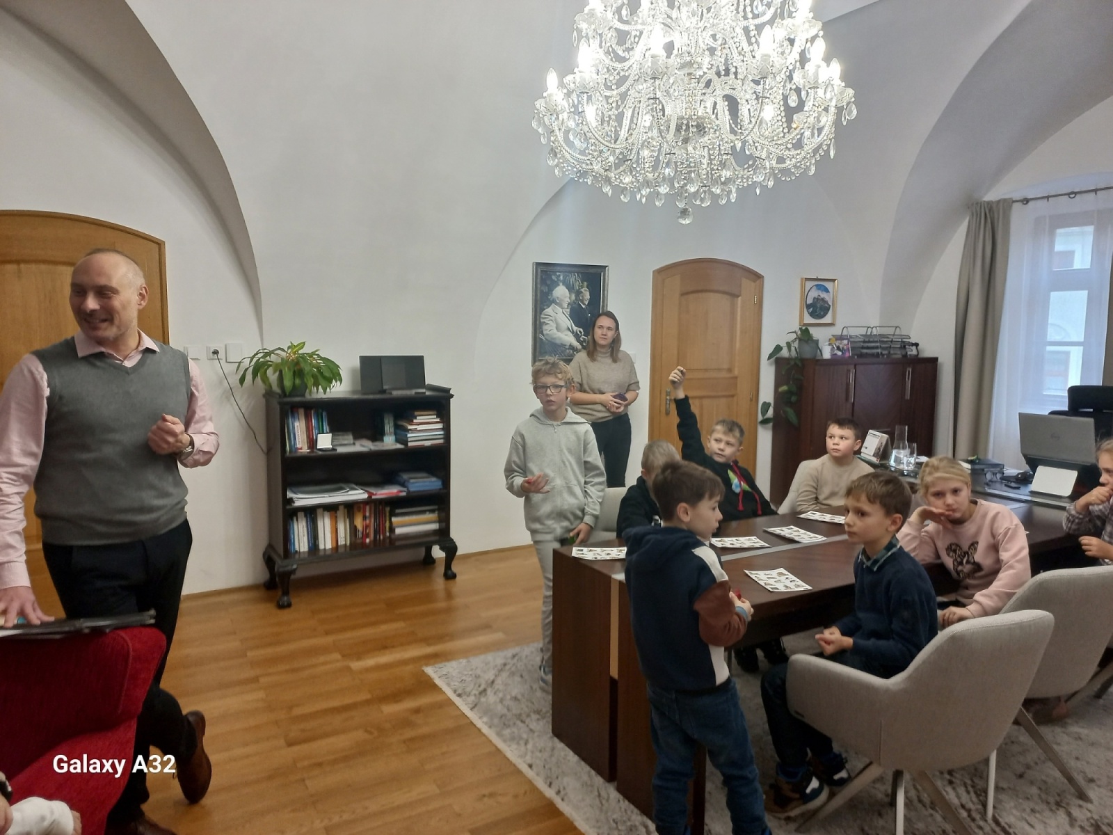Na závěr čekalo třeťáky milé překvapení. Každý dostal nálepky s motivy znojemských památek, nafukovací balónky a také sladkou odměnu z „kouzelného šuplíku“ pana starosty. Atmosféra byla přátelská a děti odcházely nadšené a plné nových zážitků.