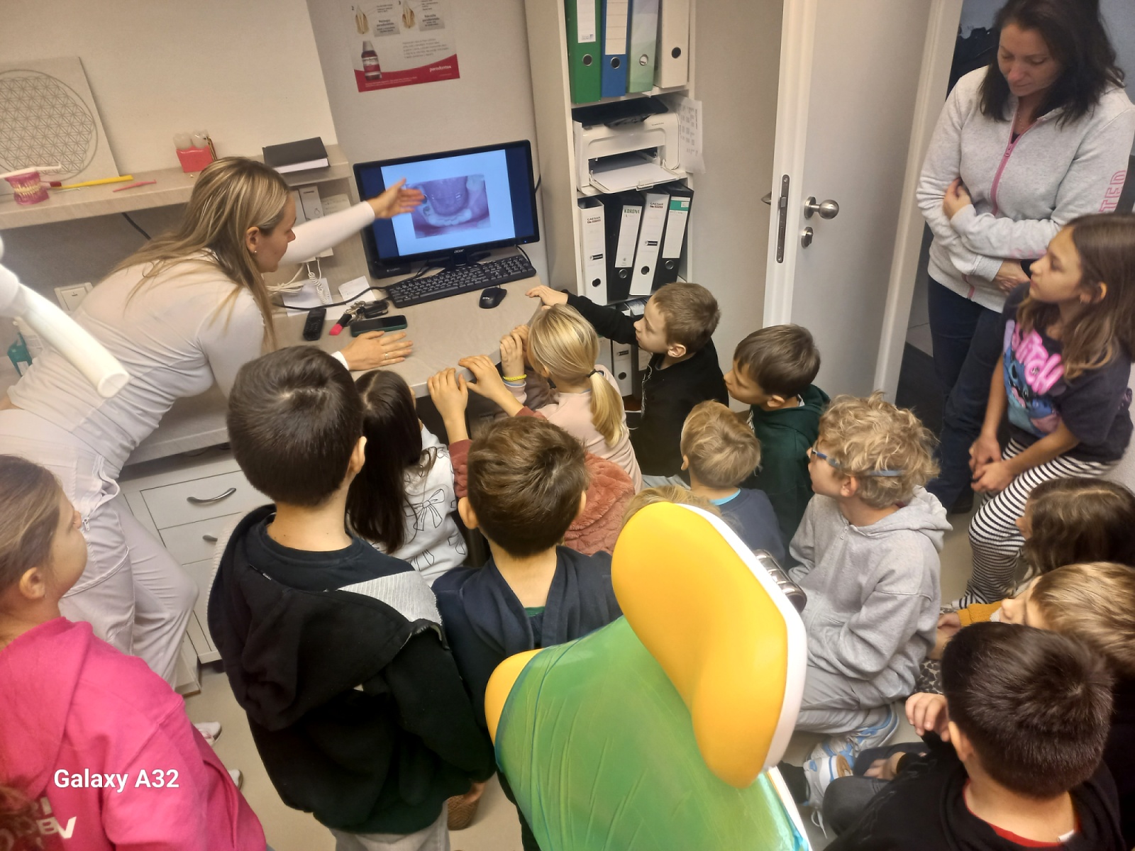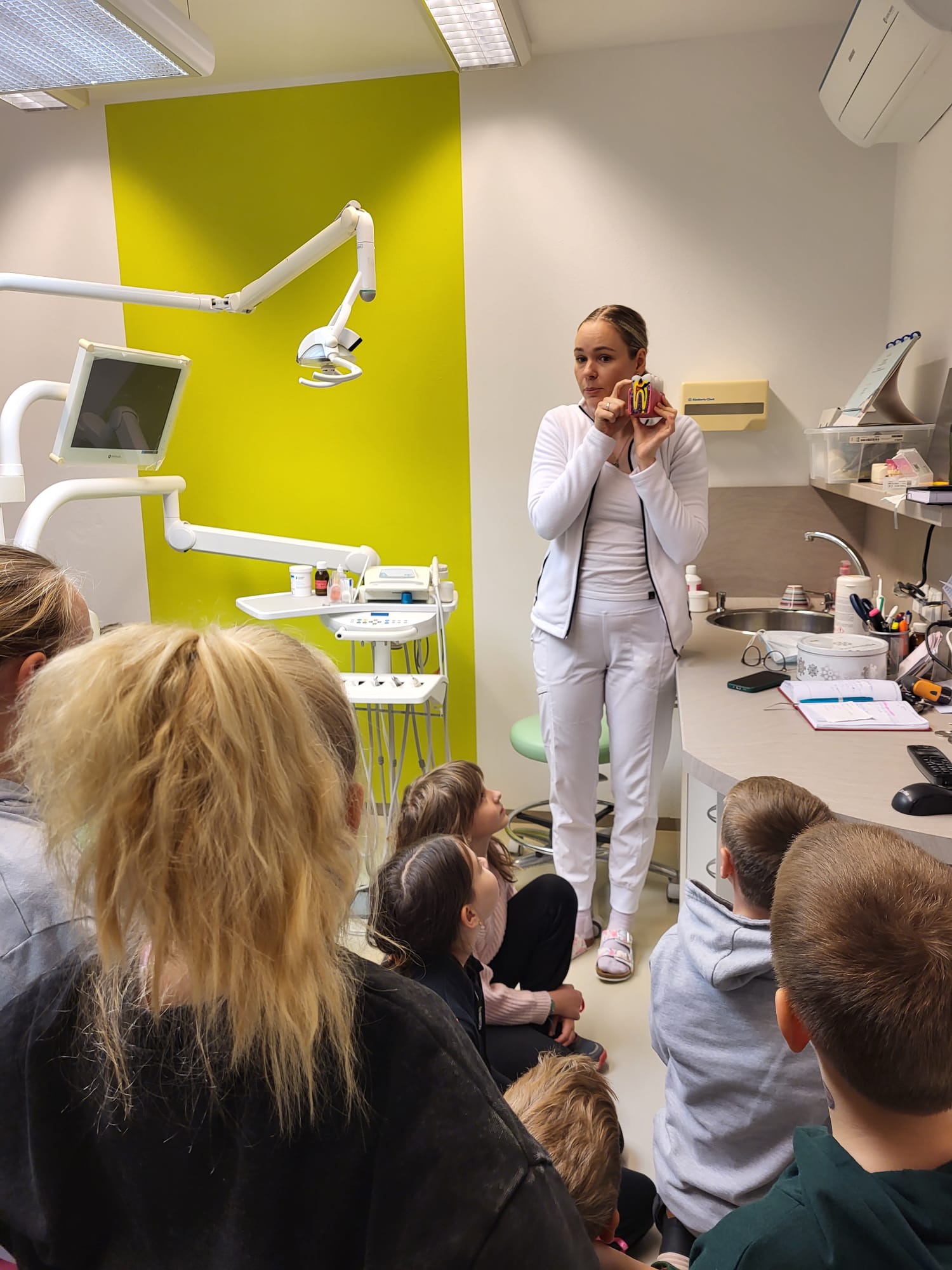 Celá návštěva proběhla v příjemné atmosféře a děti si ji velmi užily. Na závěr si odnesly i malý dáreček – zubní pastu, která jim jistě připomene, jak důležité je pečovat o svoje zuby každý den.