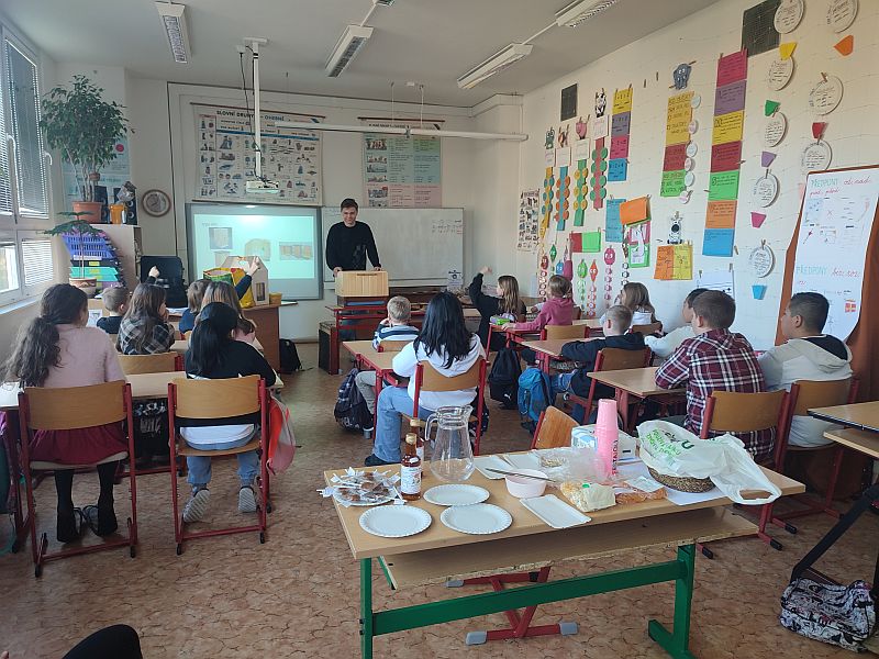 Pan včelař nám popsal svou práci, ale hlavně nám popsal život včel a jejich důležitou roli nejen