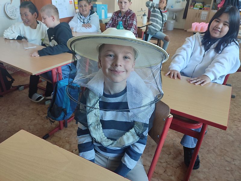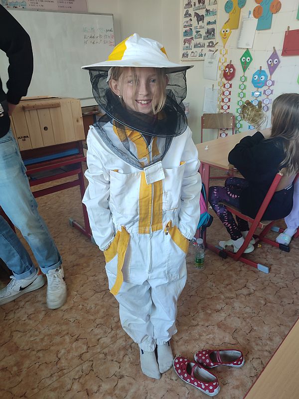 a jak chrání svou včelí královnu. Děti měly možnost vyzkoušet si včelařský oblek, nahlédnout