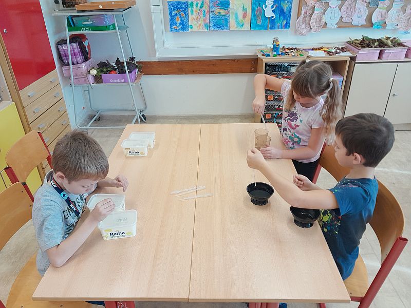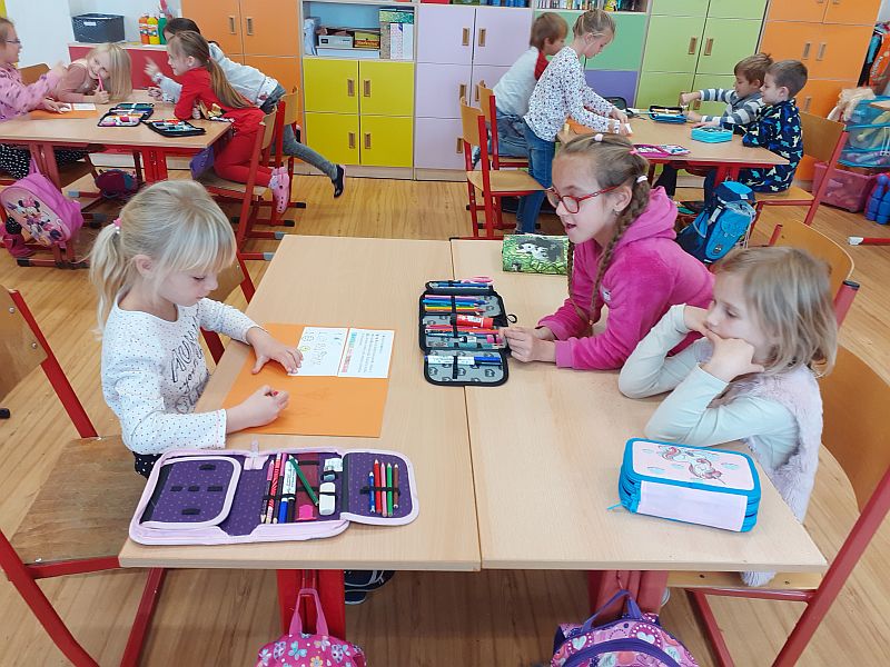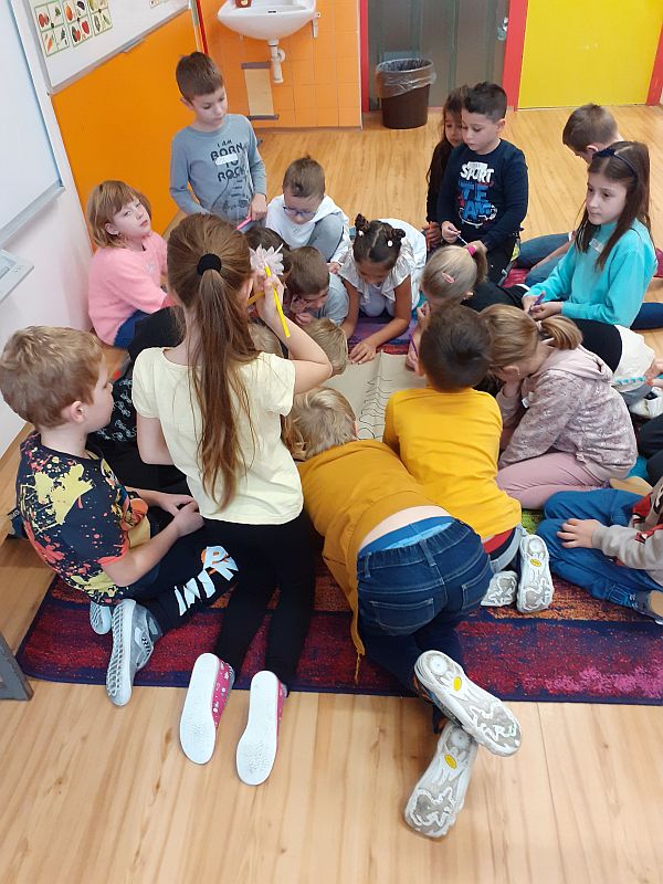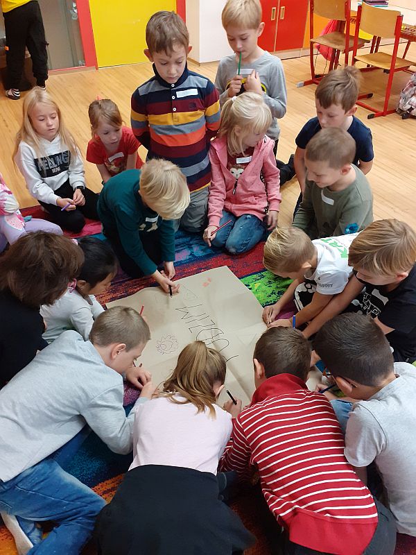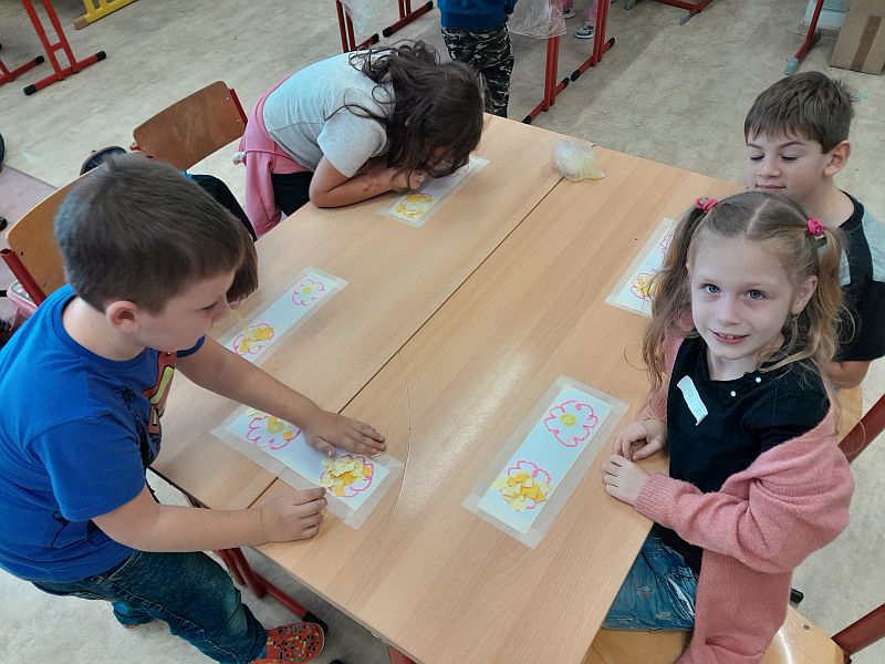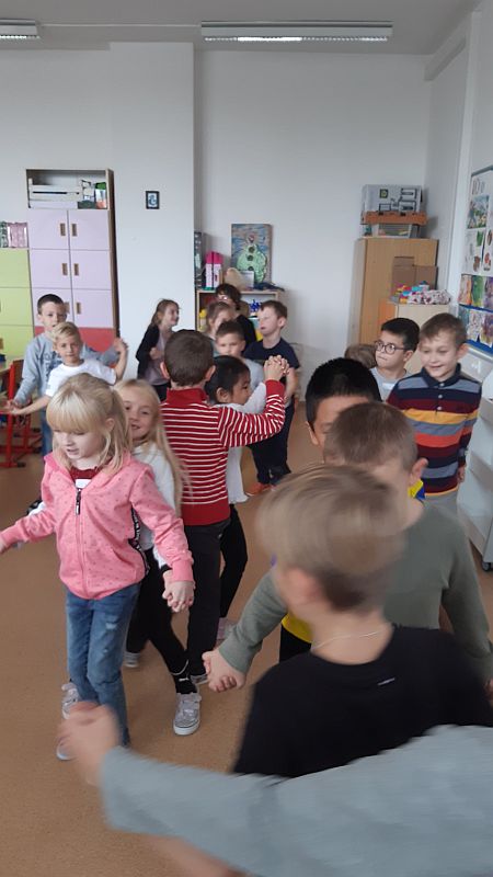 Projektový den na téma Podzim v přírodě. Žáci si zopakovali a připomněli, co již o podzimu znali. Zazpívali si písničky s podzimní tematikou, zatancovali si, ochutnali podzimní ovoce, zkoumali listy a jejich stavbu, učili se spolupracovat ve skupinách. Vytvořili si také podzimní obraz z otisknutých jablíček.