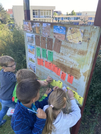V pátek 17. 9. proběhl projektový den 2. ročníků ve venkovním areálu školy. Žáci využili různých učebních a odpočinkových zákoutí školní zahrady a hřiště. Formou kvízu, křížovek, doplňovaček, hádanek a dalších doplňkových metod výuky si žáci osvojili a procvičili zajímavosti o ovoci, zelenině a zemědělských plodinách našeho kraje.