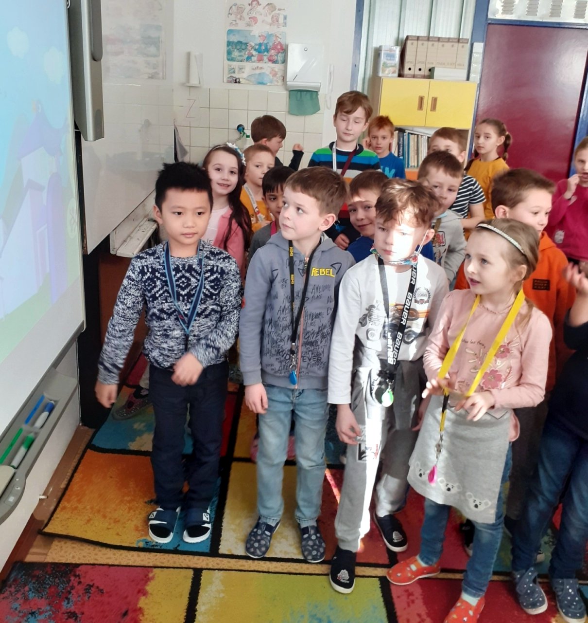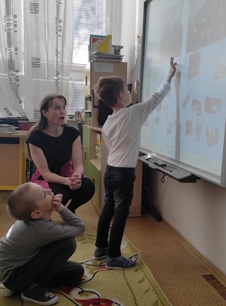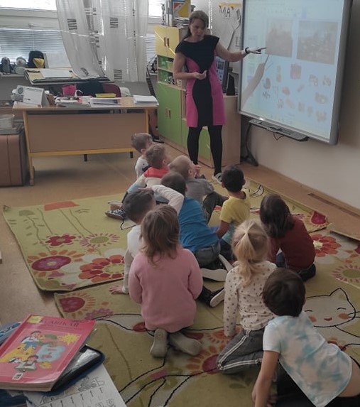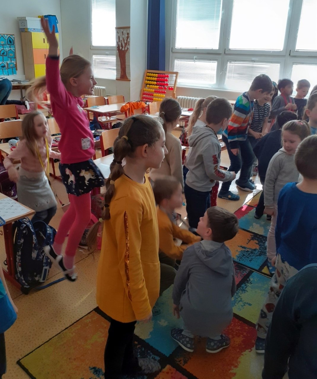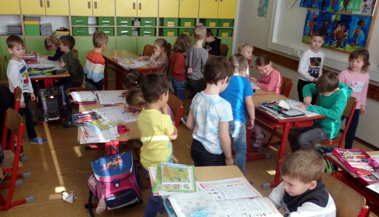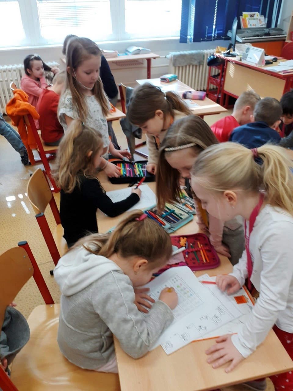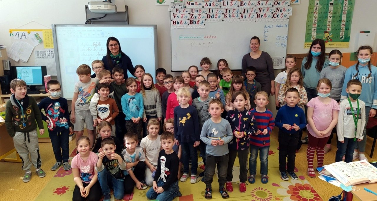 Prvňáci se tak setkali se svou bývalou paní učitelkou a mohli se pochlubit, co všechno se již naučili. Děti z MŠ si vyzkoušely, jak vypadá hodina ve školní třídě. Školáci ukázali co všechno se už zvládli naučit: číst, psát, počítat, ... Nechyběly ani písničky a taneček. Na závěr dostali všichni sladkou odměnu.