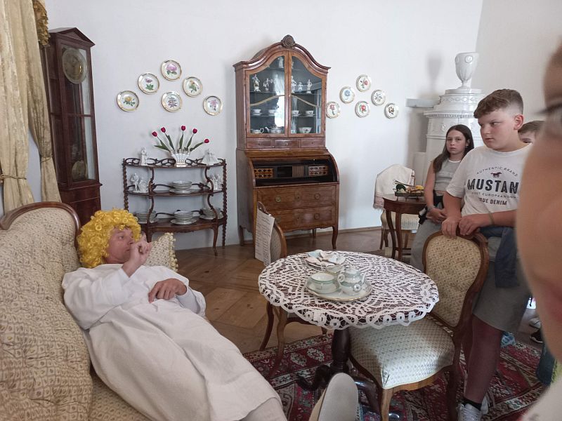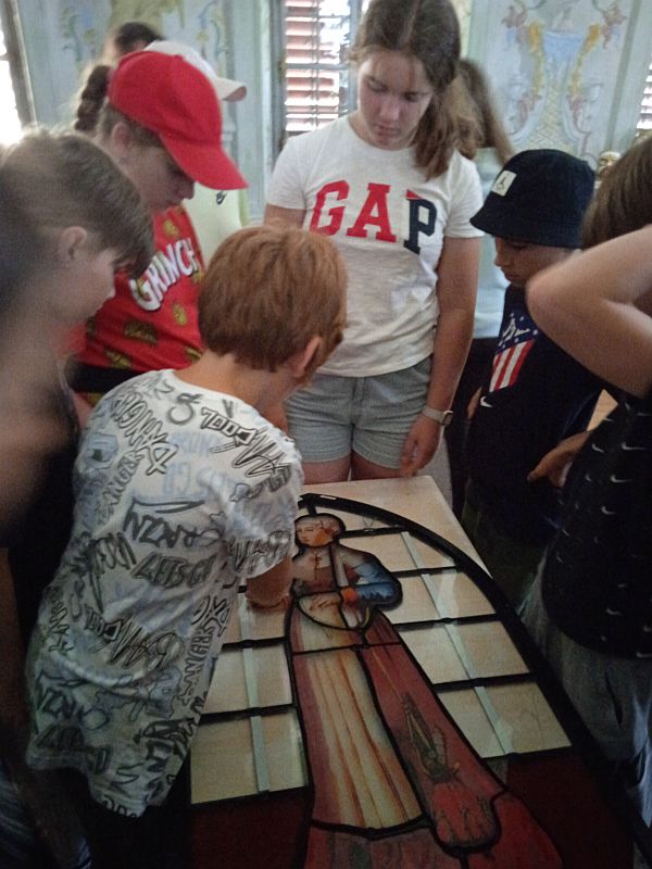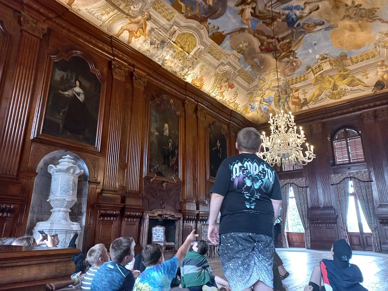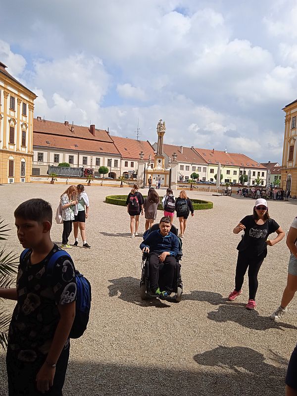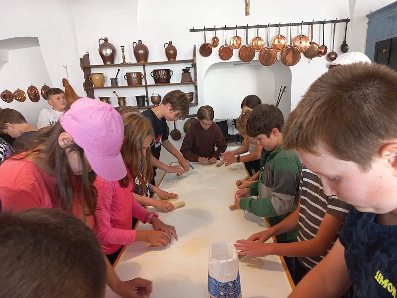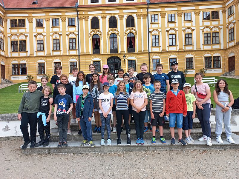 Naším cílem byla návštěva krásného barokního zámku v Jaroměřicích nad Rokytnou. Zaujala nás jeho krása i velikost a dozvěděli jsme se spoustu zajímavých věcí. Dokonce jsme se setkali i s dědem Vševědem, který nám zadal nelehké úkoly. Vše jsme ale hravě zvládli a na konci programu na nás čekalo překvapení. Mohli jsme si v zámecké kuchyni za asistence pravé zámecké kuchařky upéct vlastní bramborové placky s povidly. Po návštěvě zámku jsme se občerstvili v místní cukrárně a nechybělo ani zakoupení upomínkových předmětů.