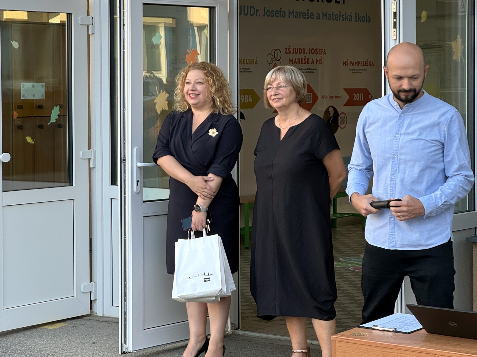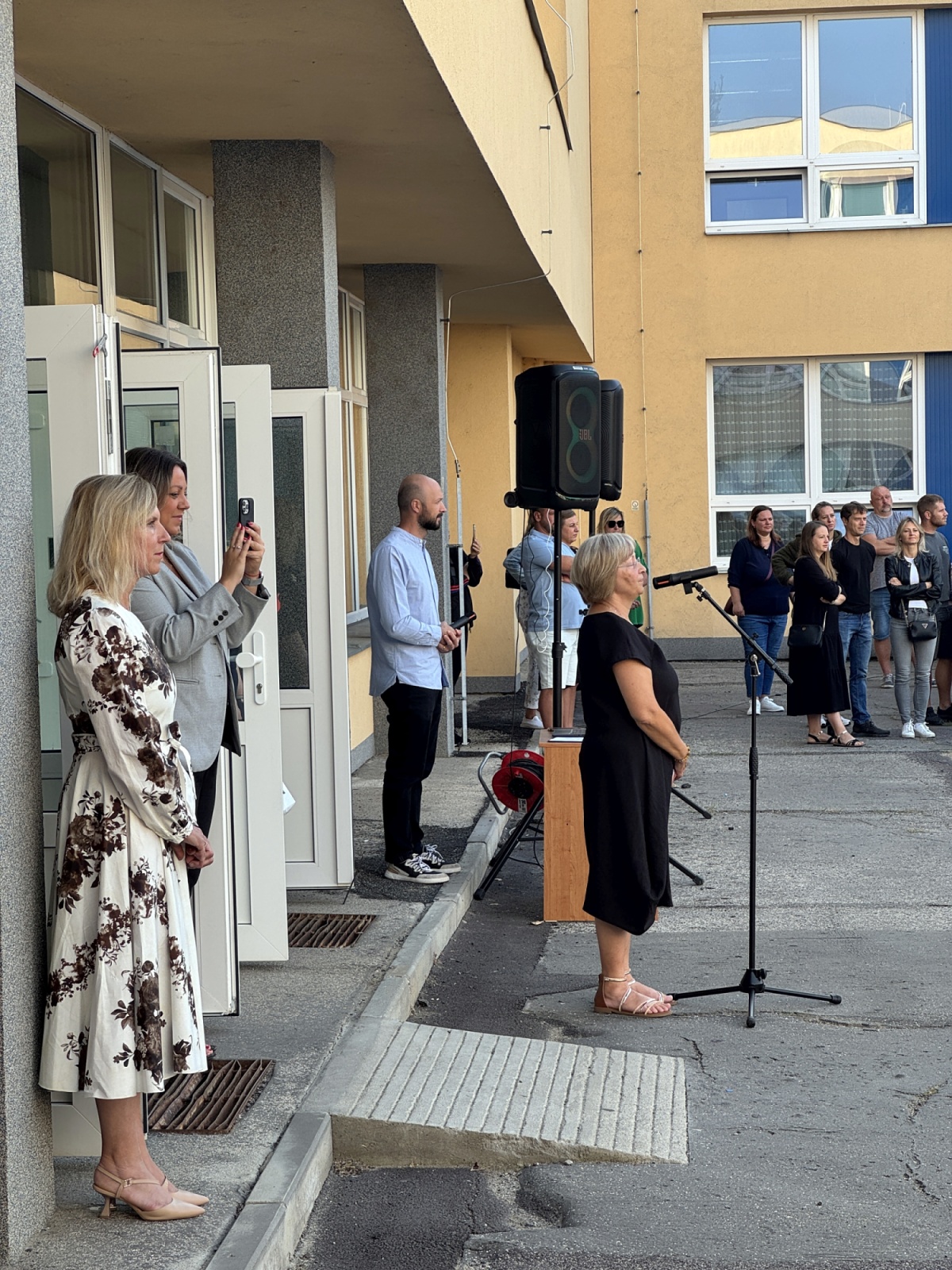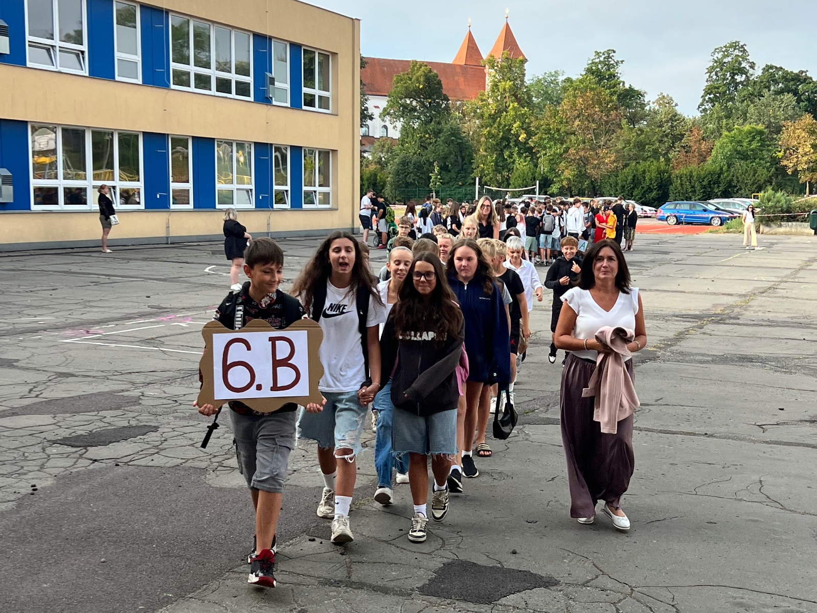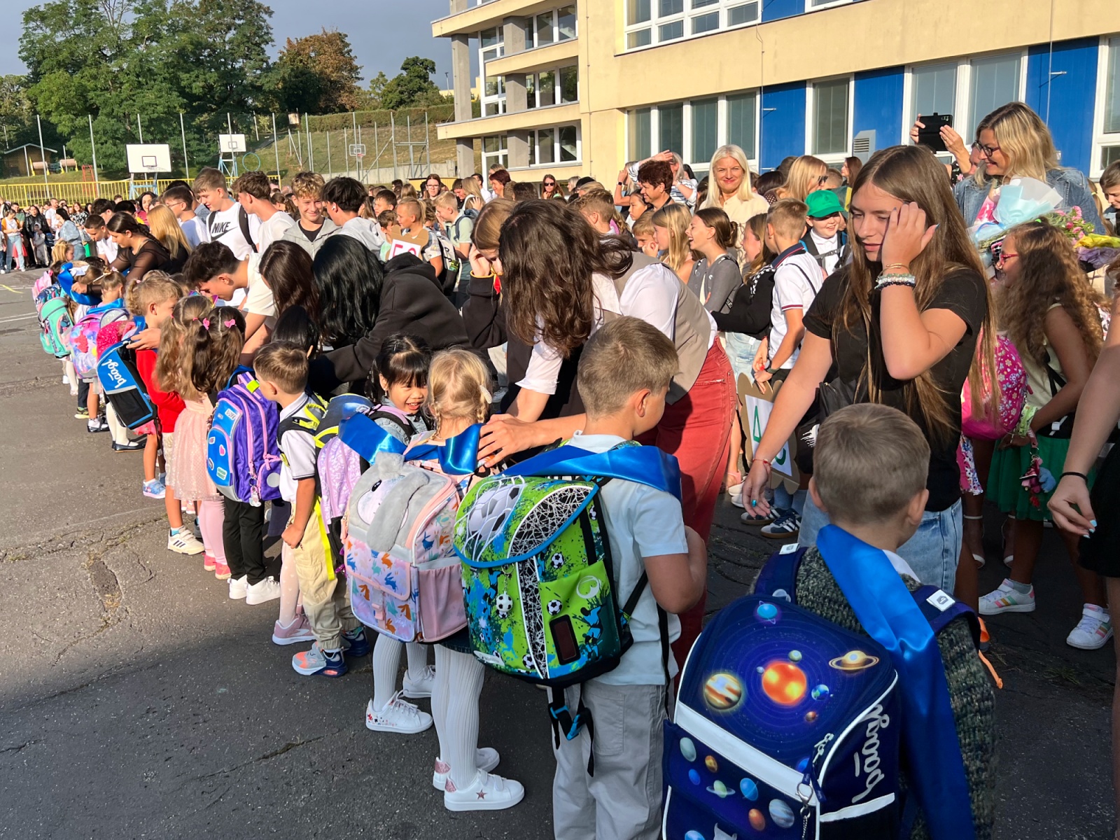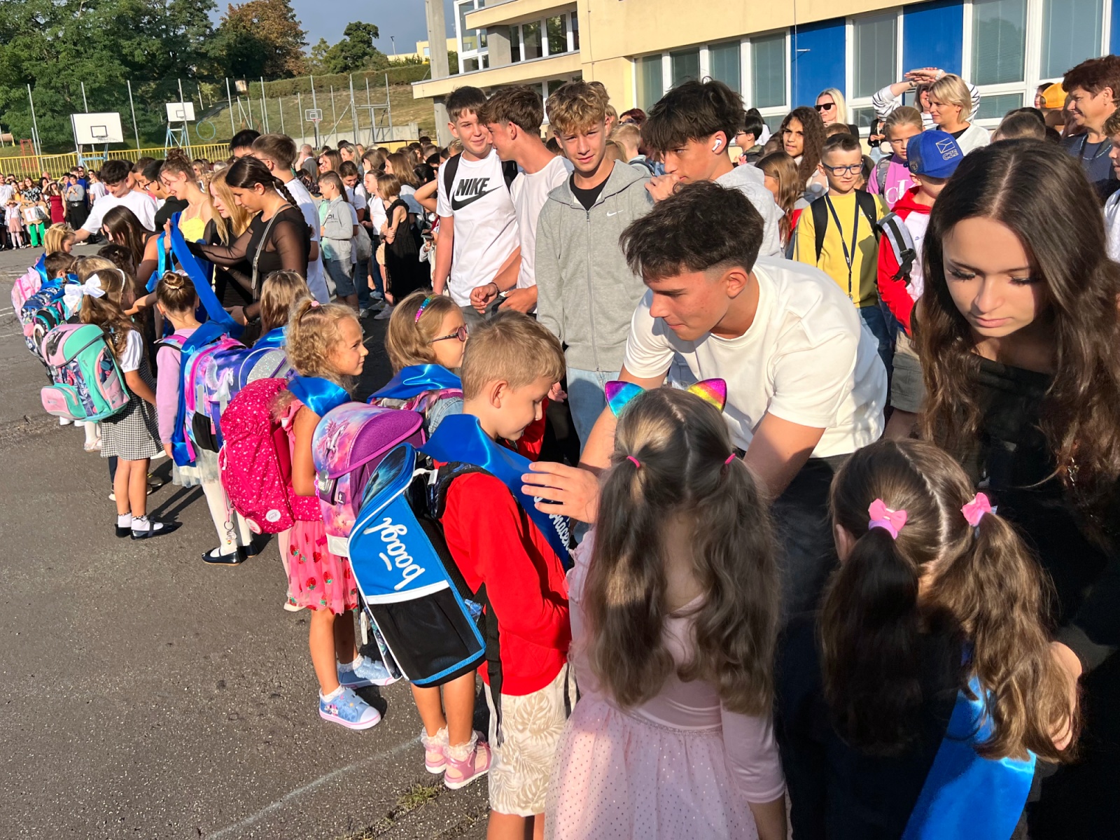 Přítomné přivítala paní ředitelka Mgr. Eva Hubatková krátkým proslovem a přivítala i vzácného hosta – tajemnici Městského úřadu Znojmo Ing. Denisu Krátkou. Součástí slavnostního zahájení bylo i tradiční šerpování prvňáčků, kteří tak symbolicky vstoupili do školního života.