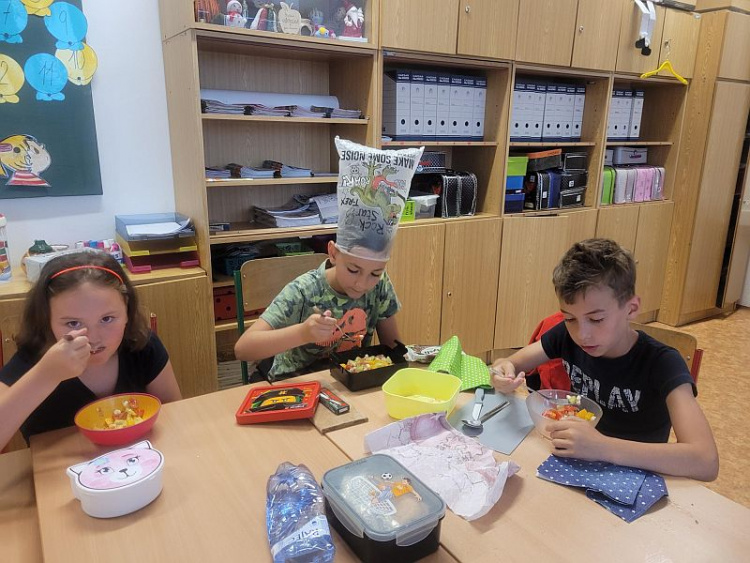 Zapojili jsme i výpočetní techniku a zúročili naše dosavadní znalosti a namalovali si zdravé a nezdravé potraviny, napsali recept na oblíbené jídlo či vyřešili úkoly týkající se jídla na dětských webových stránkách.