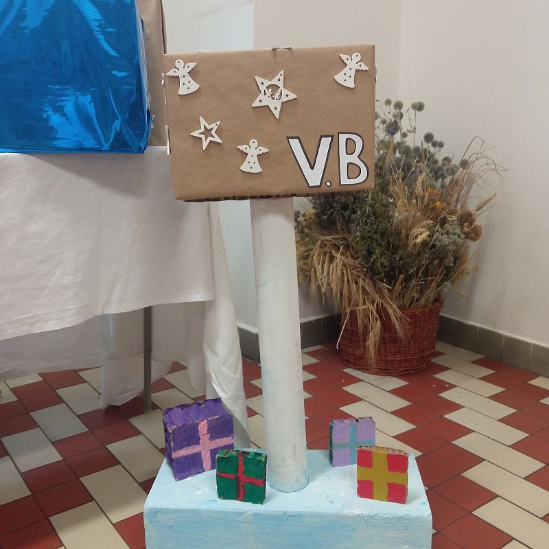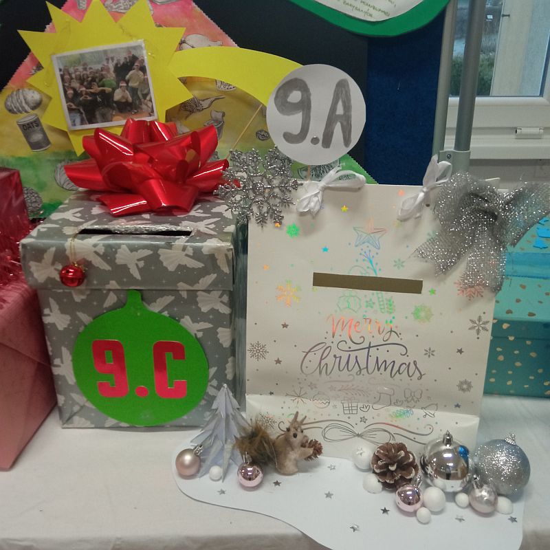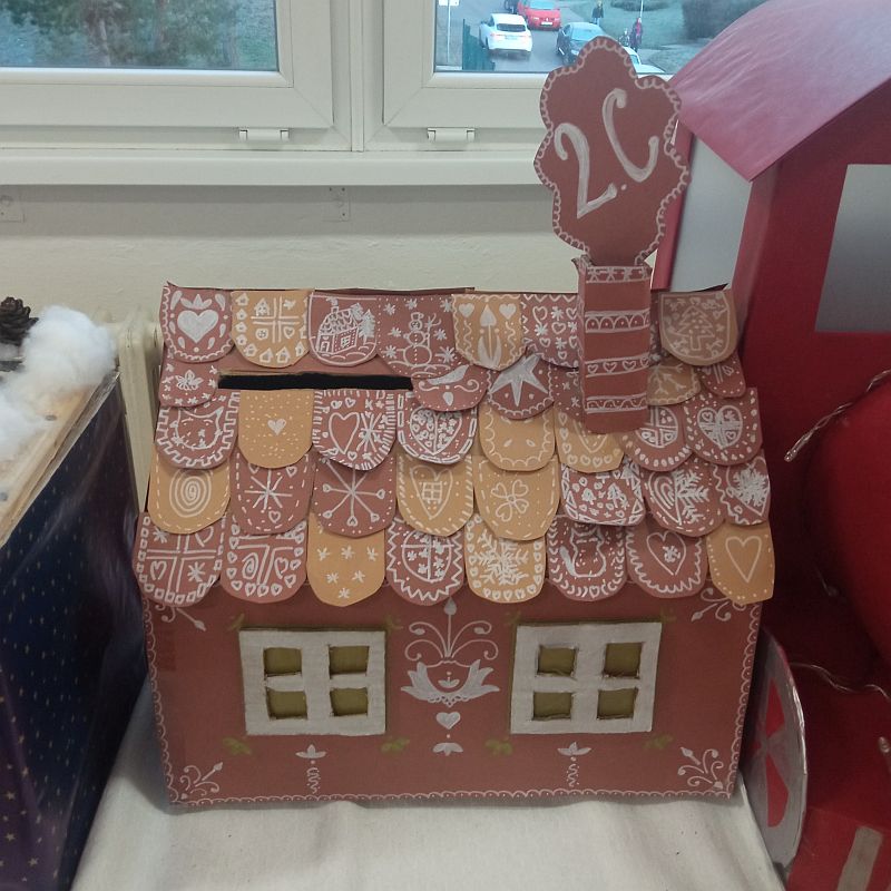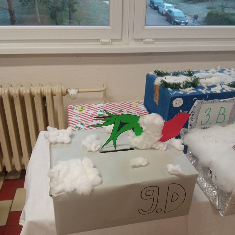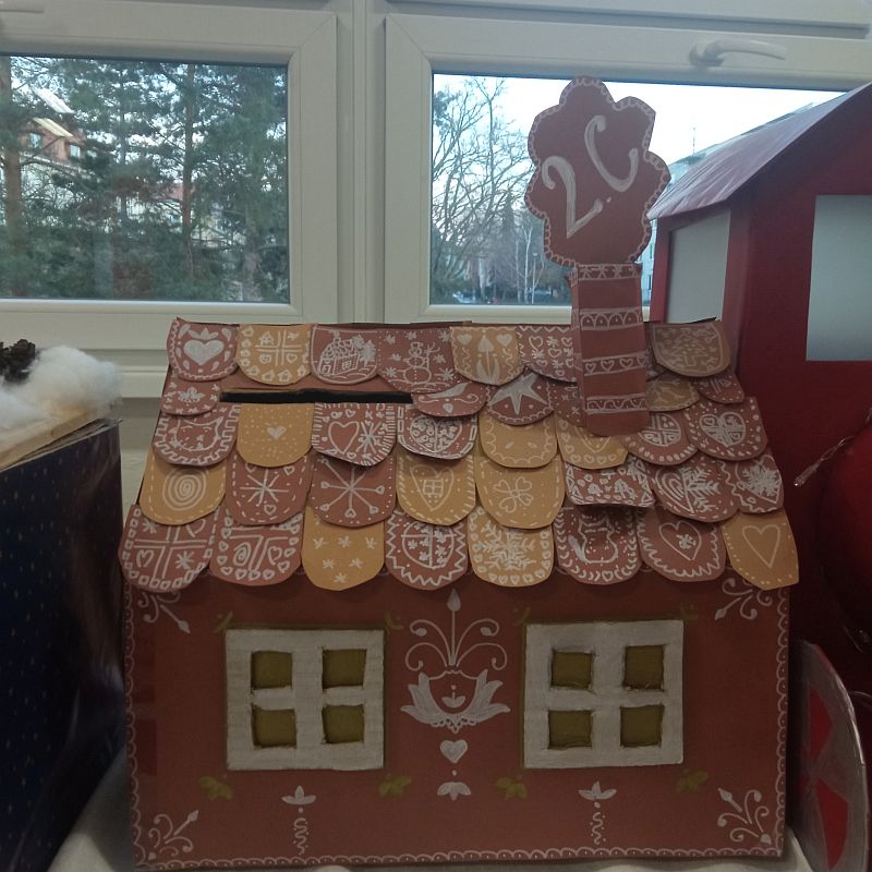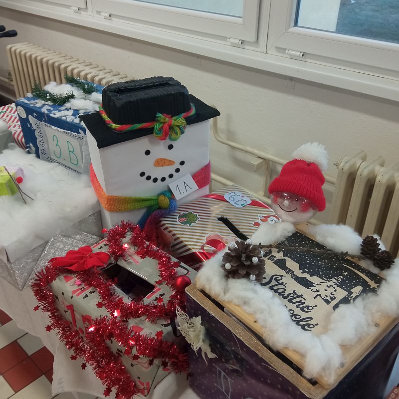 V prostorách u jídelny si všechny třídy nachystaly originální schránky na vánoční poštu.