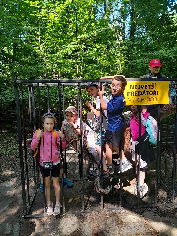 Potom jsme se vydali místním vláčkem do prehistorické doby v Dinoparku a seznámili jsme se s dinosaury. Promítání filmu v místním 3D kině, to byl pro děti opravdu pěkný zážitek. Nakonec přišlo na řadu dětské hřiště a nákup suvenýrů. Tak jsme zakončili náš výlet.