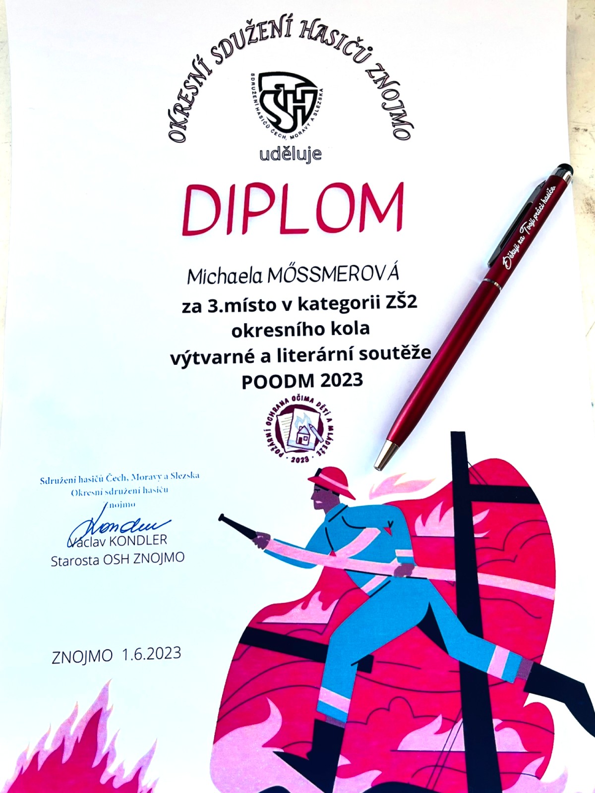 Dne 1. 6. 2023 se v prostorách centrální hasičské stanice HZS ve Znojmě uskutečnilo slavnostní předávání oceněných žáků, kteří uspěli ve výtvarné soutěži - Požární ochrana očima dětí a mládeže.