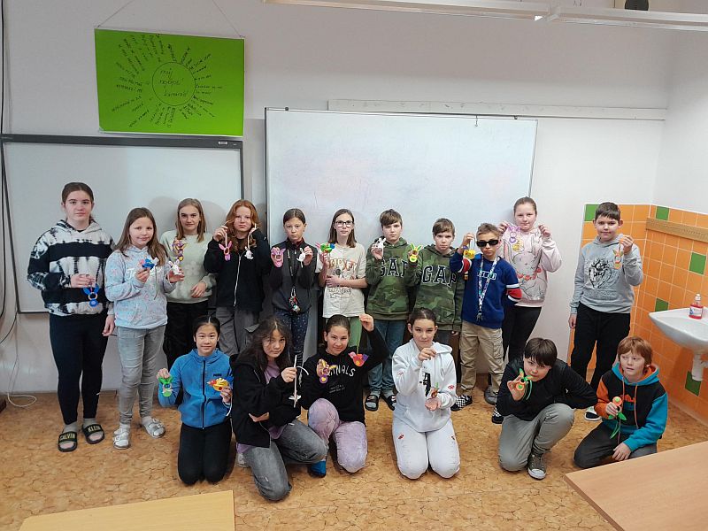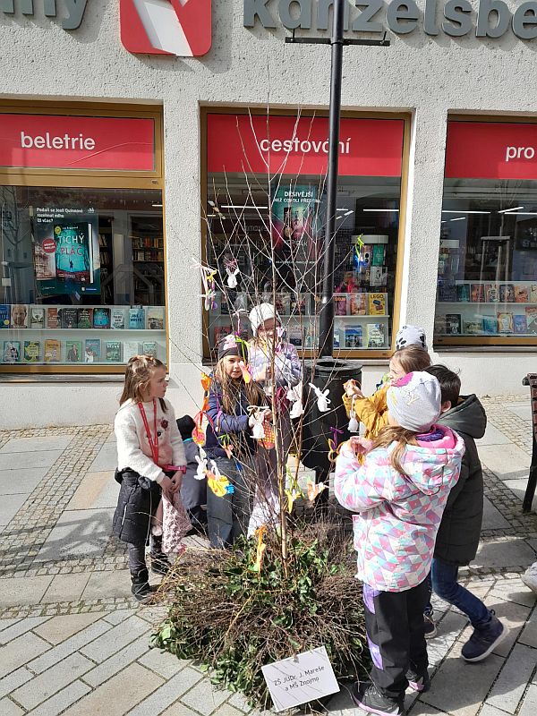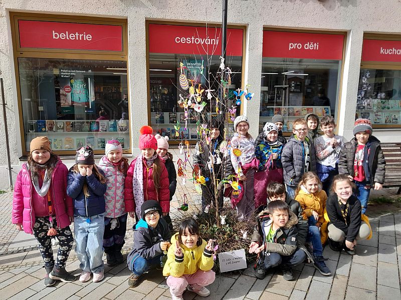 Tradičního zdobení velikonoční břízky se ujaly partnerské třídy 1. B a 5. B.