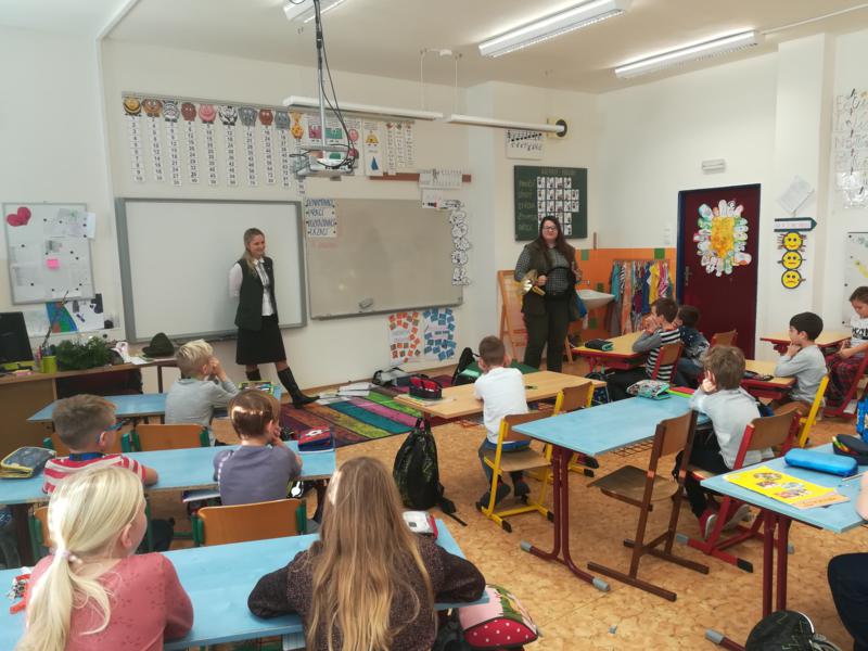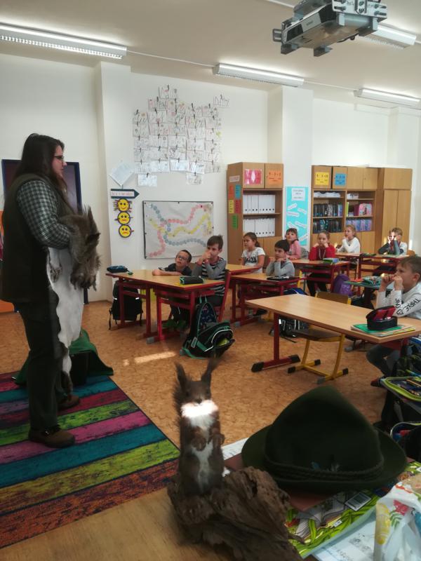 jsme se seznámili s terminologií lesníků. Děti si mohly prohlédnout a osahat srst divočáka, lišky a veverky. Také jsme si