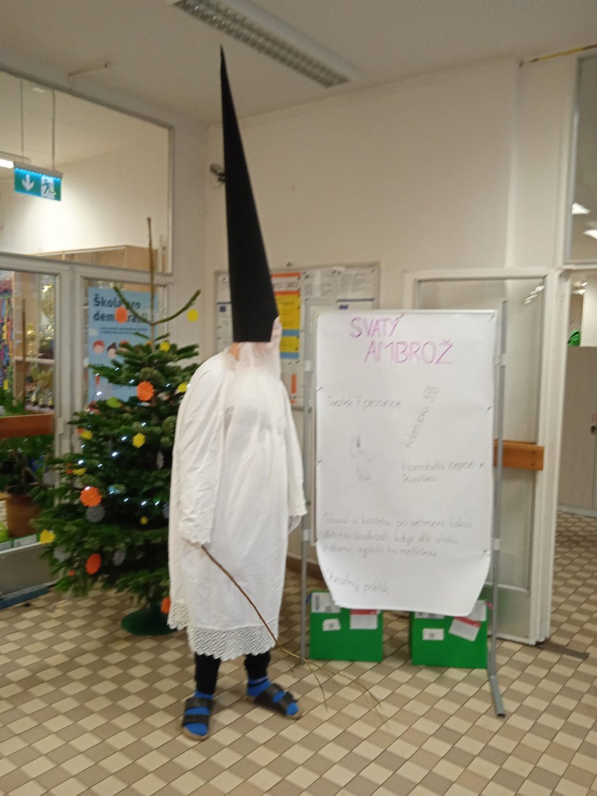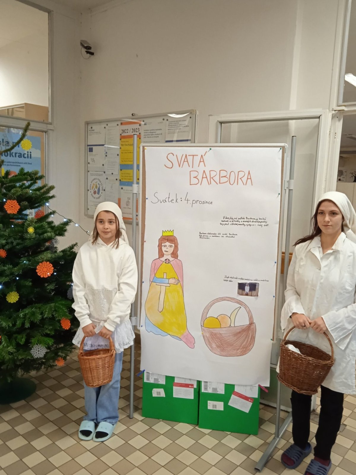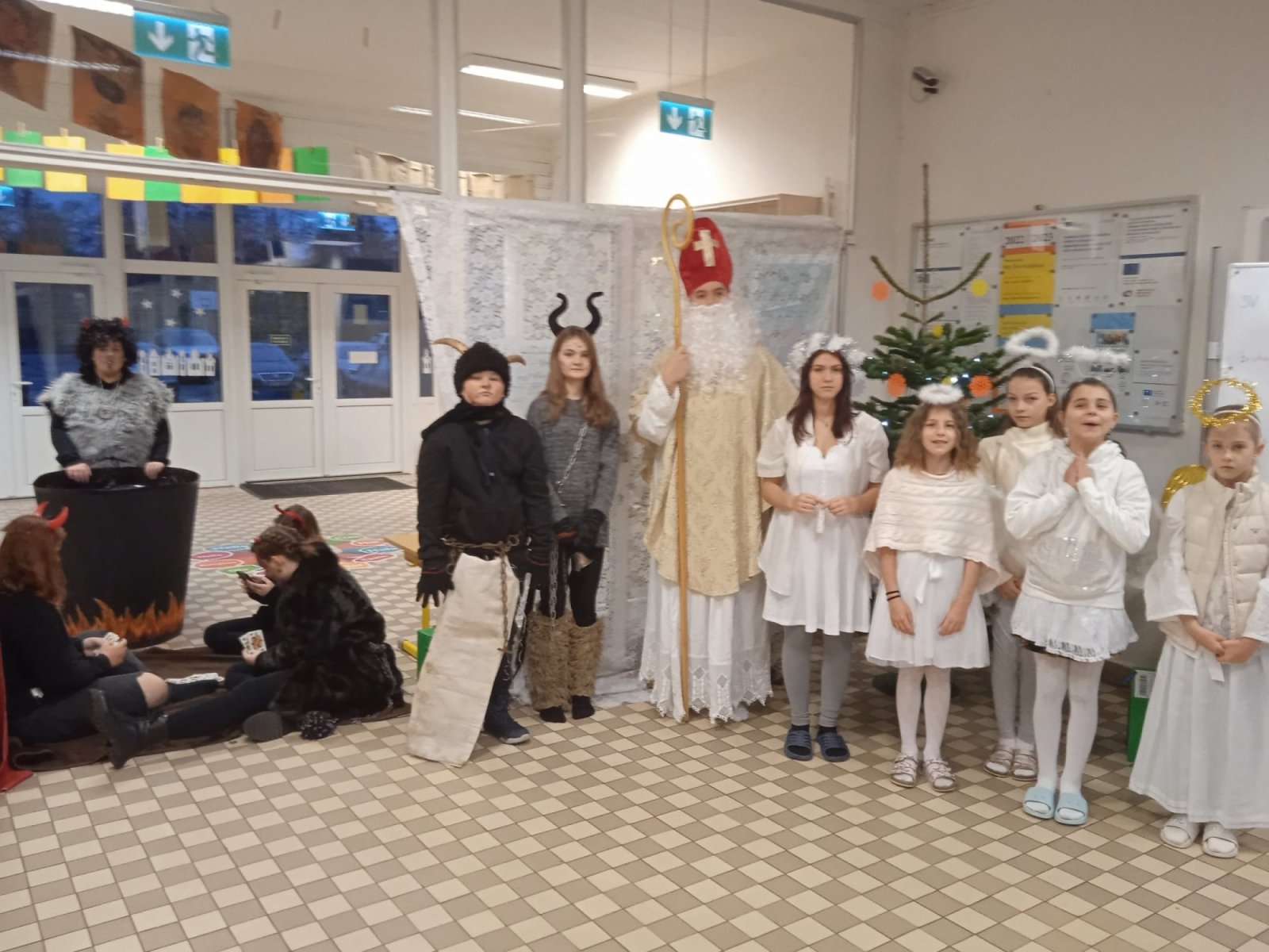 Ráno ve vchodu školy vítali příchozí postupně Sv. Barbora, Sv. Mikuláš se svojí družinou, Sv. Ambrož a Sv. Lucie.