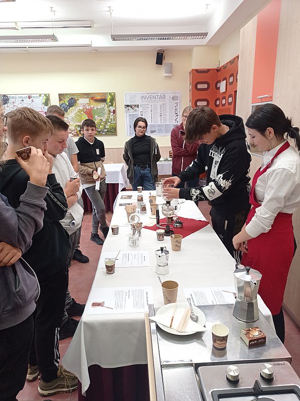 Na akci Řemeslo má budoucnost jsem si zvolila obor Hotelový management. Nejdříve nás prostřednictvím prezentace seznámili s tím, kde bychom mohli po ukončení studia pracovat. Následně jsme se rozdělili do skupin a začali plnit stanovené úkoly. Museli jsme například rozpoznávat různé druhy koření, rozličné vůně i chuť perníčků. Zkusili jsme si malovat do pěny na připravené kávě. Za odměnu jsme mohli kávu vypít. Poslední úkol byl zaměřený na naši tvořivost. Měli jsme navrhnout vlastní jmenovky a sestavit jídelní lístek. Celá akce se mi líbila. Učitelé i žáci z Přímky byli moc hodní.