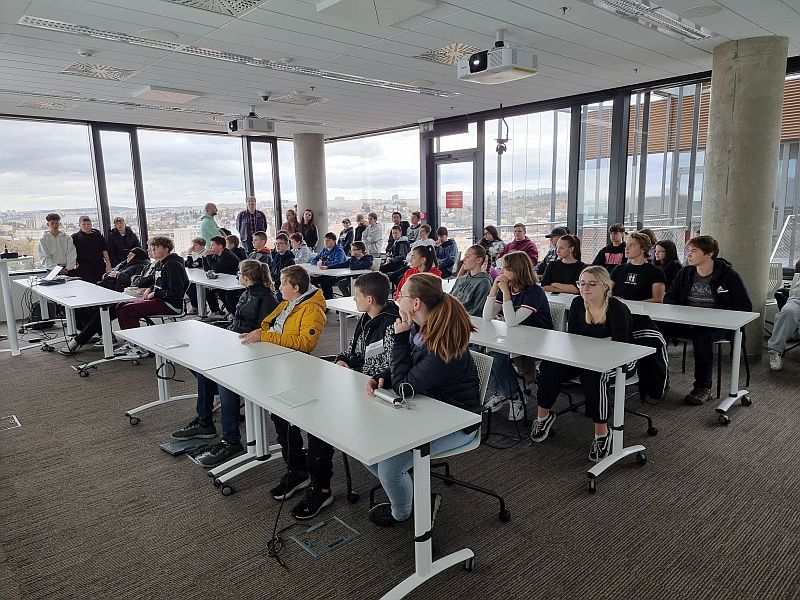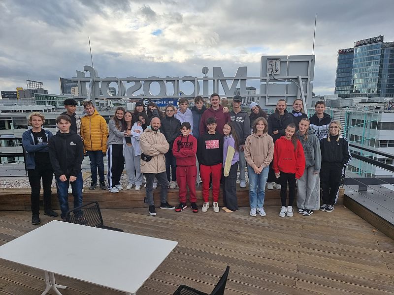 Vzal nás do nejvyššího patra, do největší zasedací místnosti, kde žákům interaktivně představil společnost a zopakoval, co vše tato světoznámá značka vyvíjí. Poté nám předvedl nejnovější zajímavé funkce nejpoužívanějších programů. V samotném závěru prezentace nám ukázal, co umí jejich umělá inteligence a jak ji dobře využít napříč programy Microsoft. Aby toho nebylo málo, vzal nás pan Klatovský na relaxační střechu a ukázal vybavenost a logistiku budovy, a to včetně nároků na přijetí do této společnosti.