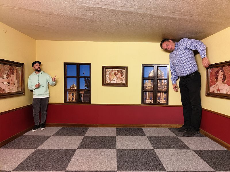 Jako první nás čekalo zmíněné Muzeum fantastických iluzí, a to kousek od náměstí Svobody. Zde jsme zažili mnoho zábavy. Žáci se díky optickým iluzím mohli stát například parašutistou, žrádlem pro kočku nebo dělovou koulí. Vše šlo krásně vyfotit na mobil, takže si všichni zážitky z muzea odvezli domů. Součástí muzea byly i nejrůznější optické klamy a historické předměty či hračky, které ke své funkci využívají OPTIKU. V praxi jsme tedy mohli zopakovat toto téma z fyziky. Různé aktivity a stanoviště se zrcadly a odrazem světla tomu krásně napomáhaly.