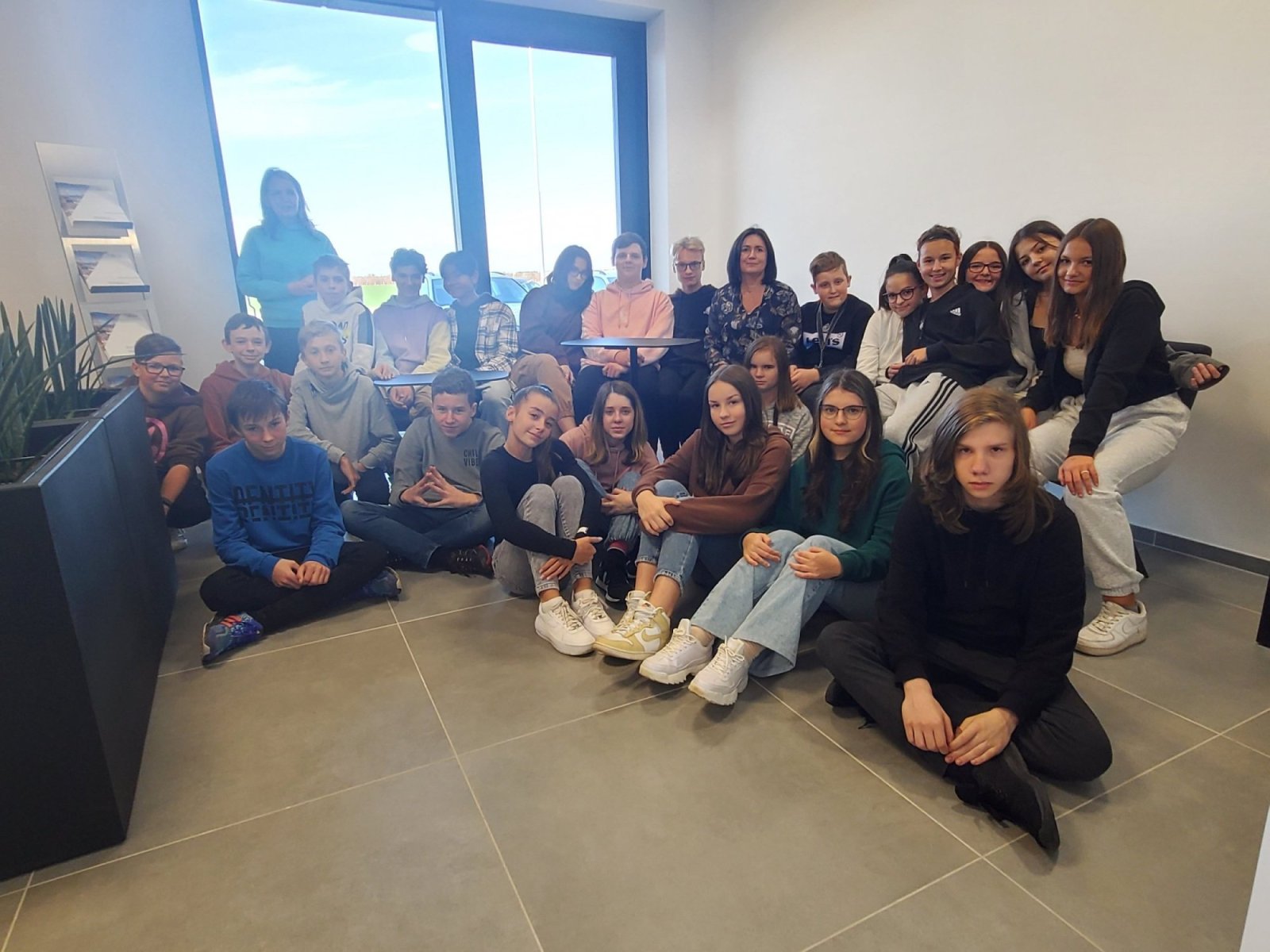 Paní inženýrka Pastrňáková nás provedla skoro po celé firmě. Ukázala nám i luxusní pokoje, kde přespávají obchodní partneři. Setkali jsme se s množstvím profesí, např. manažer, „vozíčkář“ (řidič vysokozdvižného vozíku), recepční, prodejce, referent jakosti, skladník, pracovník logistiky, údržbář, řidič, designer, účetní, vývojář, chemik…