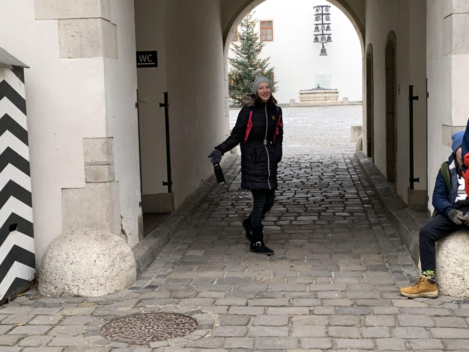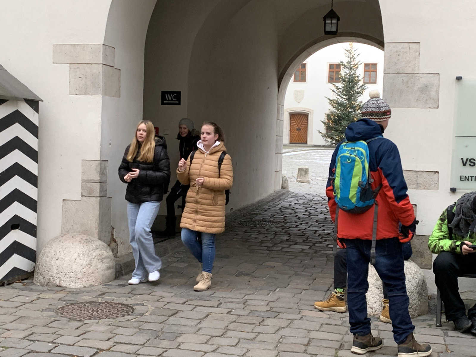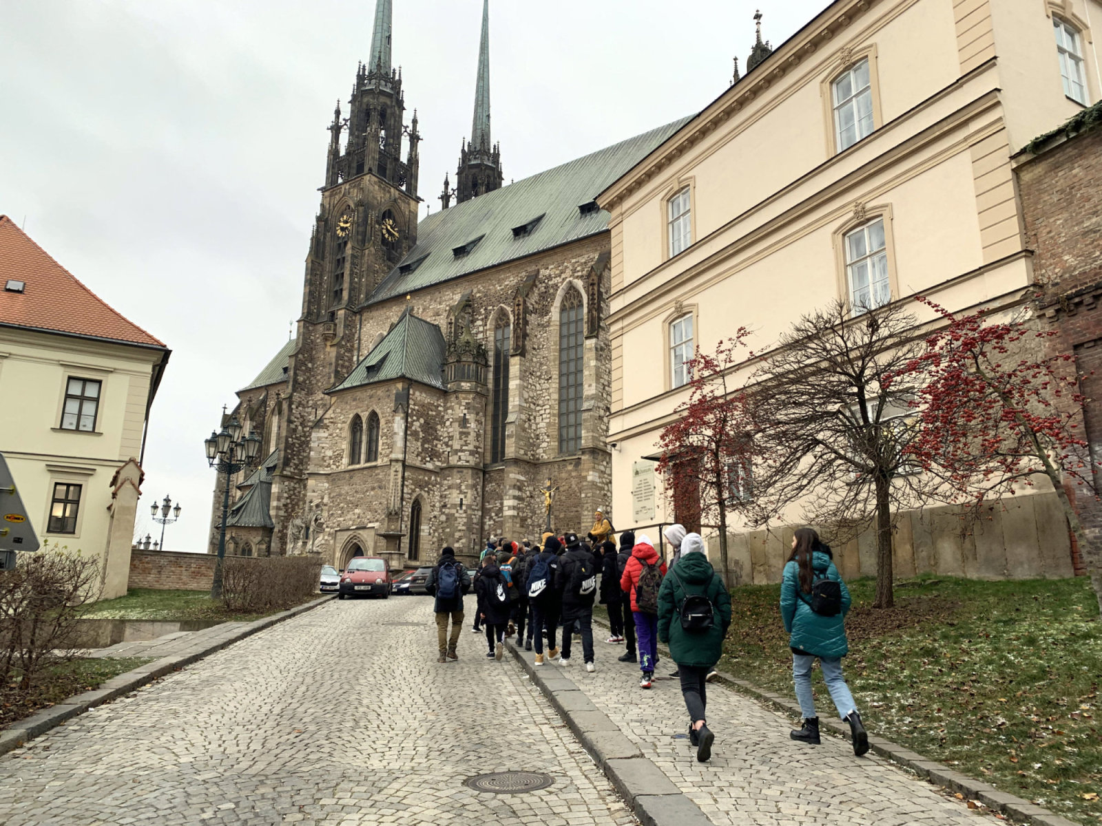 Prohlídka začala u Janáčkova divadla, pokračovala kolem sochy markraběte Jošta Lucemburského. Přes Komenského náměstí a kolem Červeného kostela jsme došli na hrad Špilberk, který byl postaven ve 13. století. Na nádvoří hradu dokonce právě hrála zvonkohra, která je tvořena z 15 zvonů.