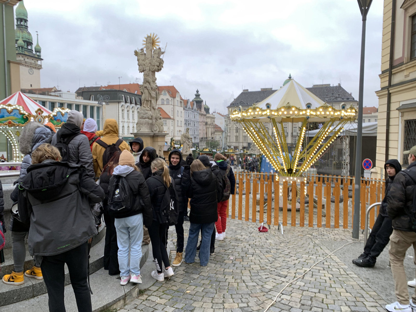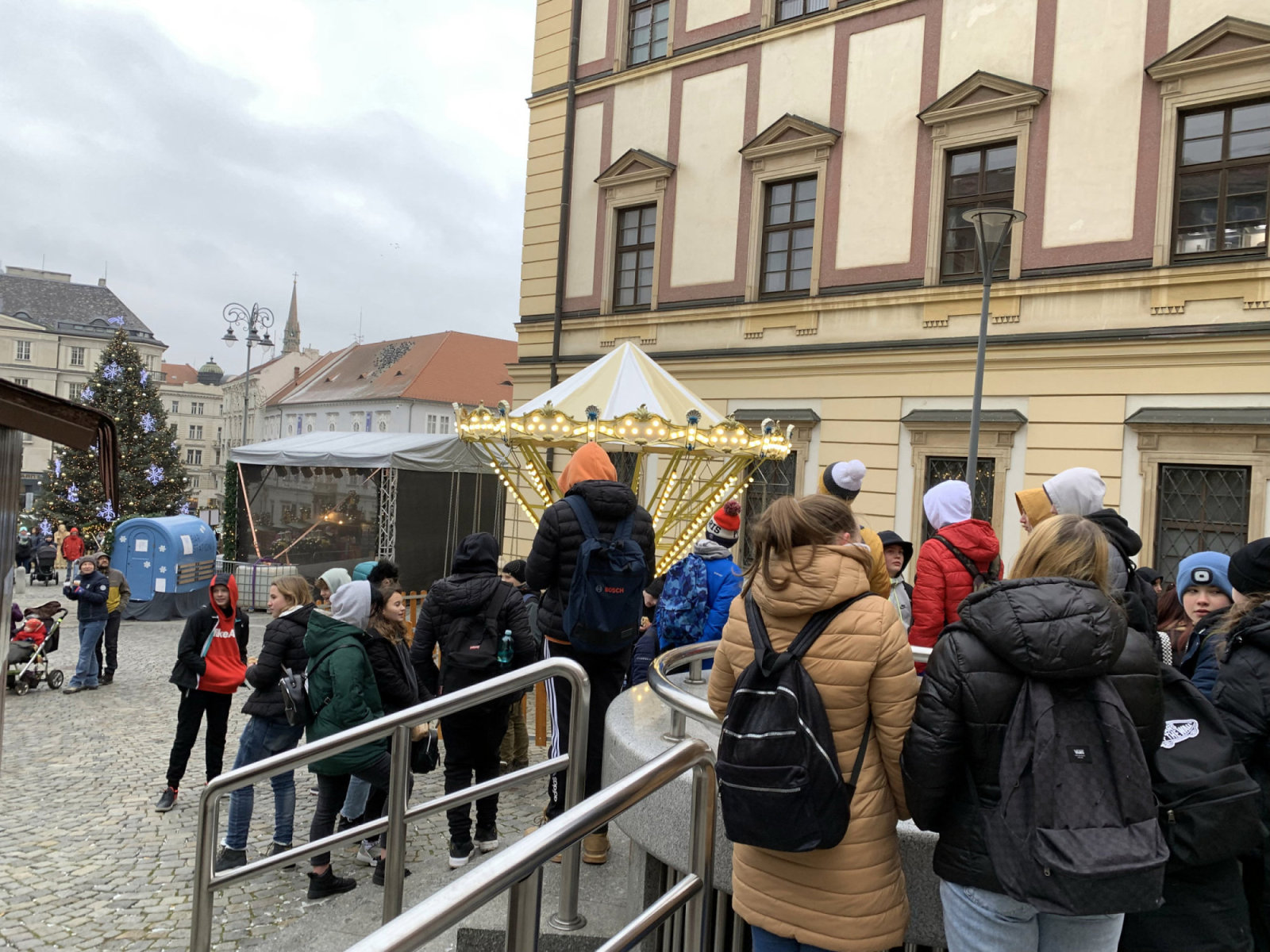 Ze Špilberku jsme rychle seběhli k Petrovu a přišli na Zelný trh, kde jsme si prohlédli vánoční trhy. Pak naše cesta směřovala na náměstí Svobody přes Starou radnici. V průjezdu věže radnice je nainstalováno brněnské kolo a drak, ke kterým se váže několik brněnských pověstí. Na náměstí děti nejvíce zaujala černá kamenná plastika Brněnský orloj.