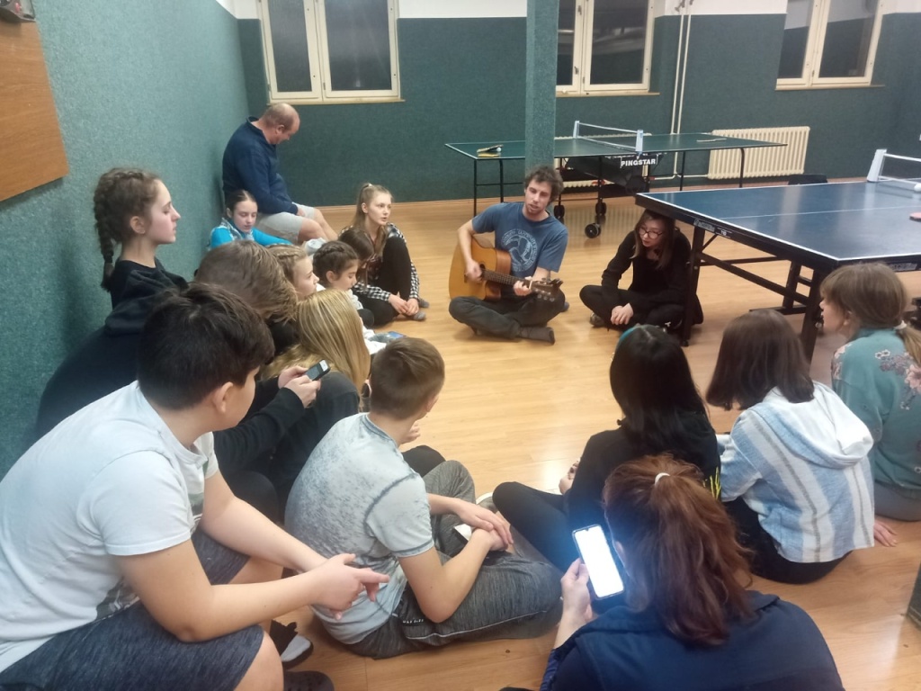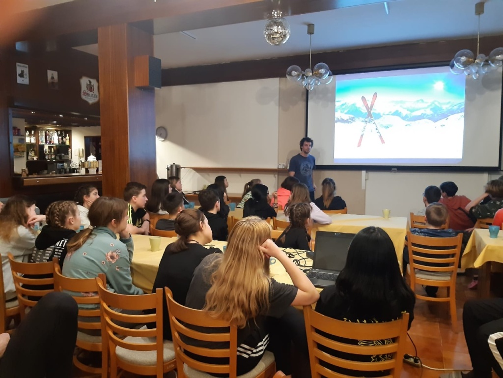 Jsme super parta a umíme se poprat s rozmary počasí. Lyžujeme, učíme se, hrajeme, tancujeme zkrátka se bavíme.