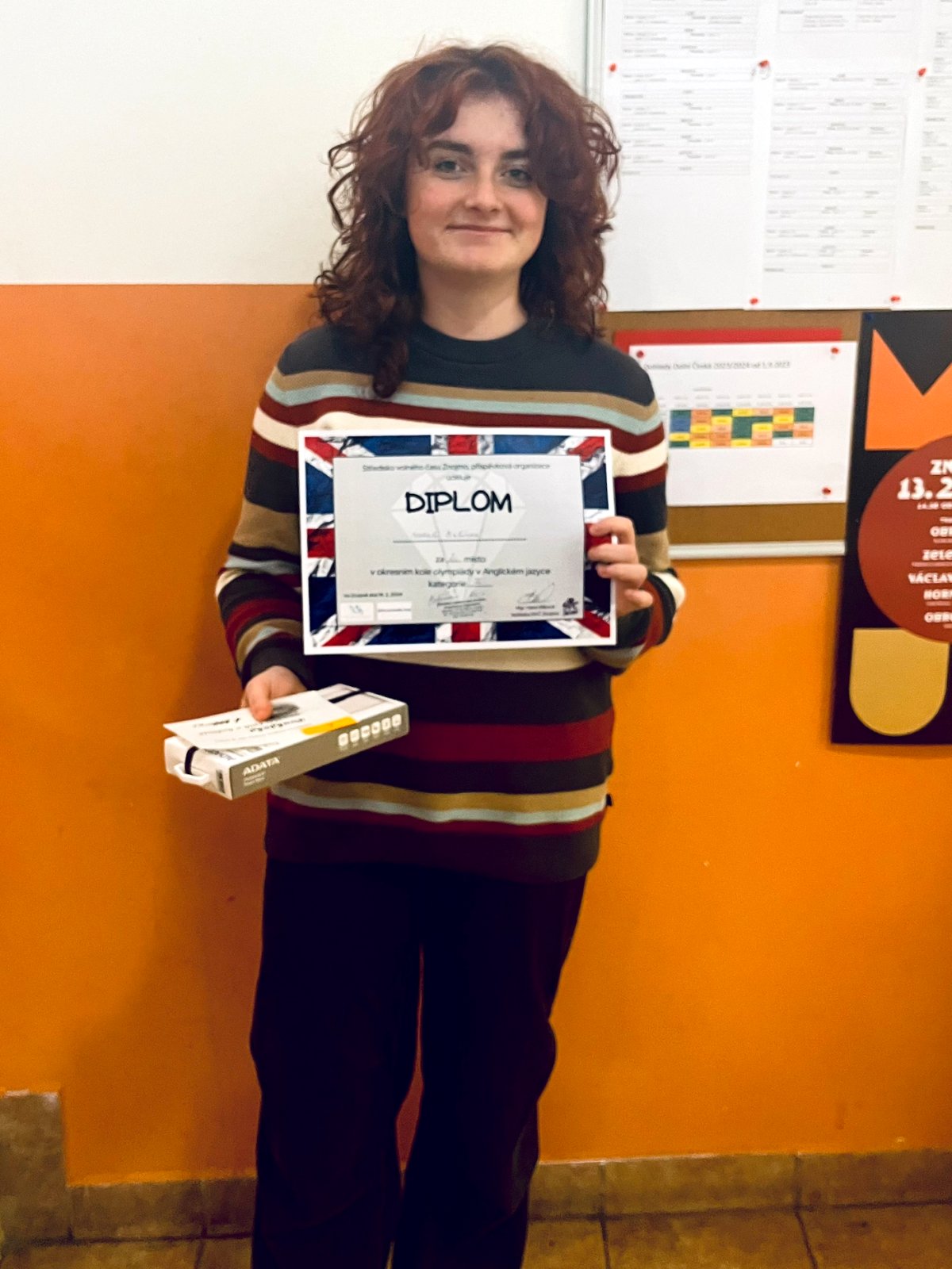 Velká gratulace patří Natali Bulínové, naší žákyni ze třídy 9.A, která obsadila krásné 2. místo. Děkujeme Natali za reprezentaci naší školy a přejeme jí mnoho úspěchů nejen v angličtině i v příštích letech na střední škole.