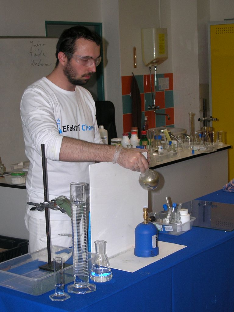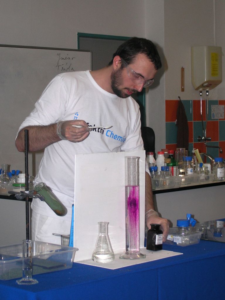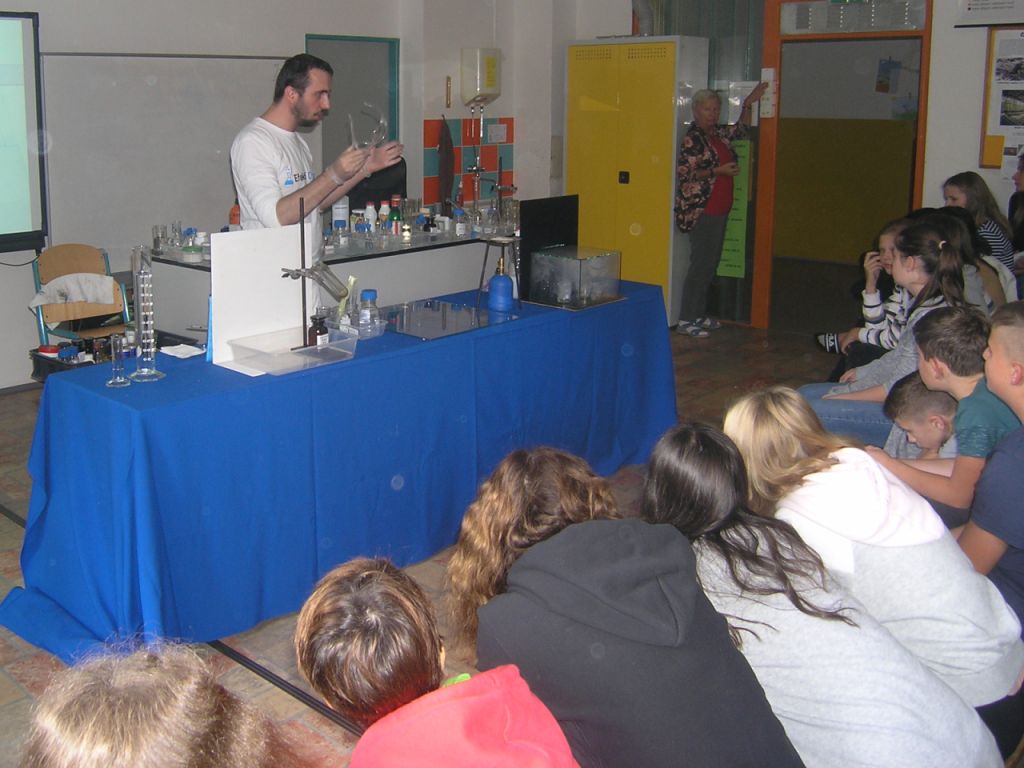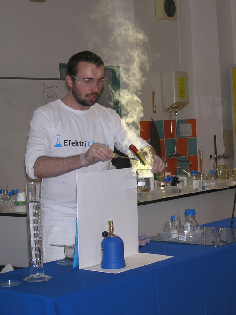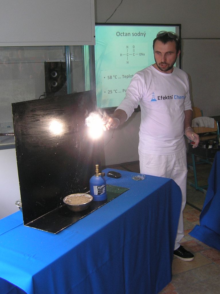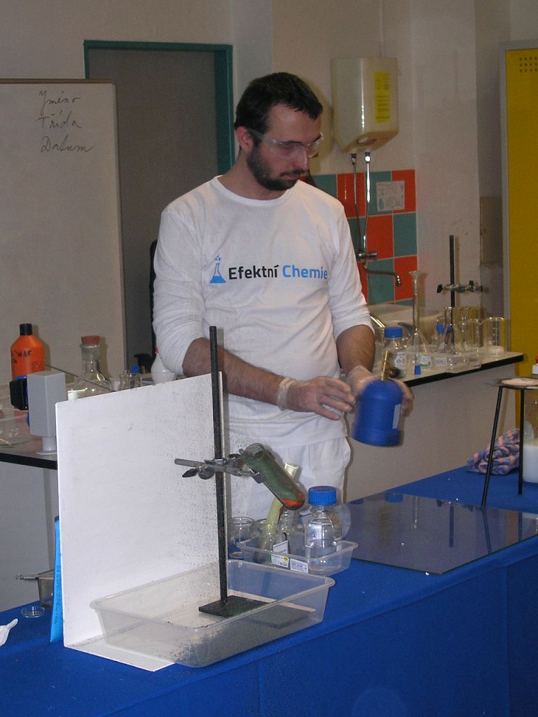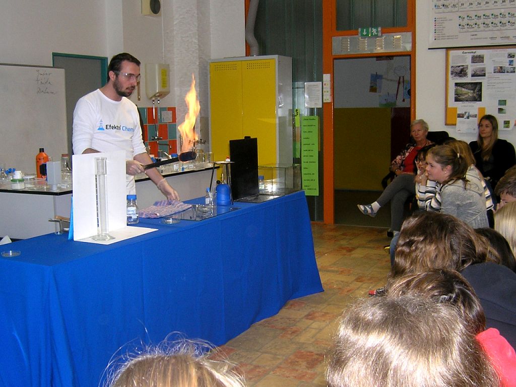 Chemické pokusy zaměřené na látku základní školy předvedl Jan Bílek z organizace Efektní chemie. Žákům se to velmi líbilo.